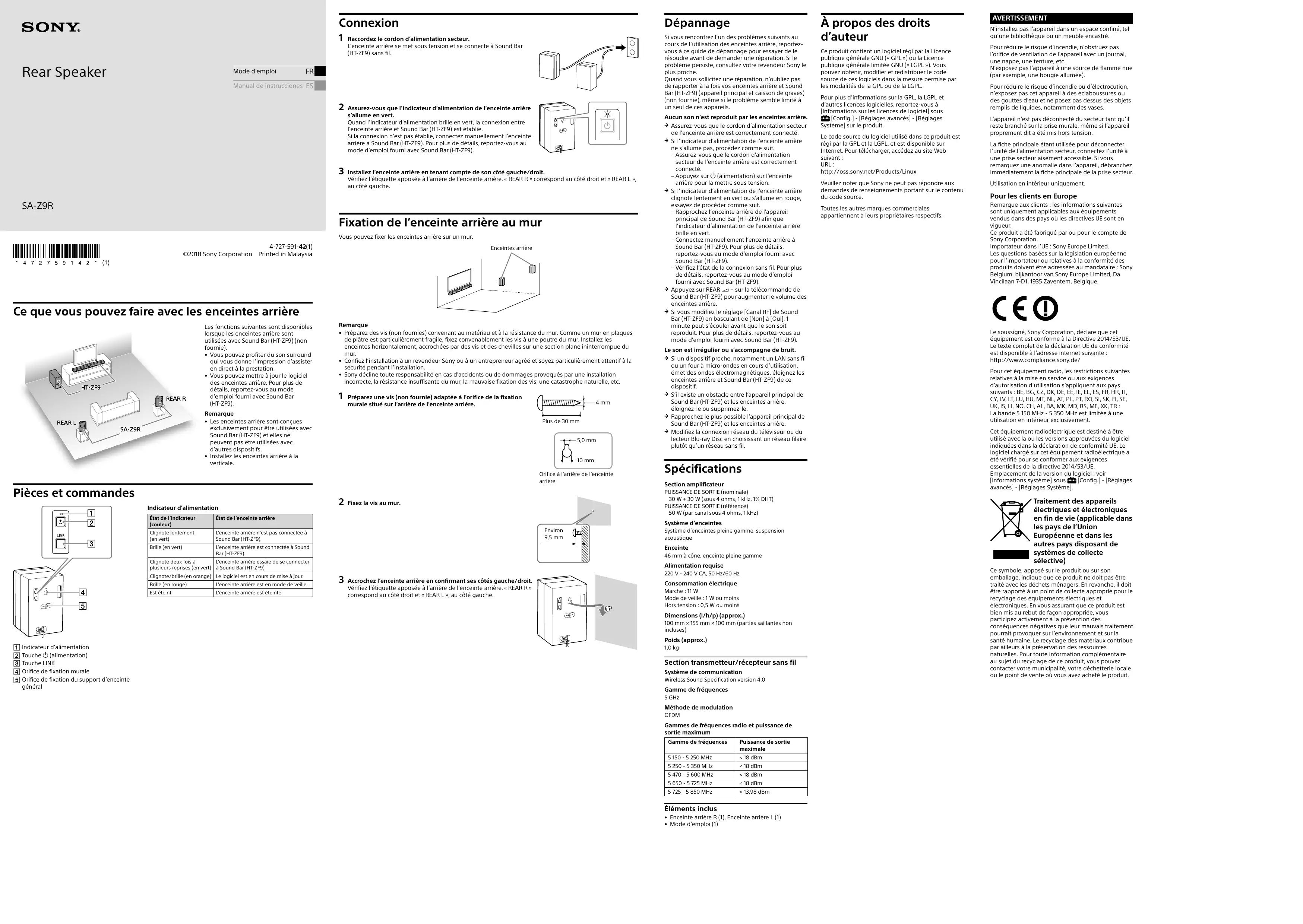 SA-Z9OR - Barre de son SONY - Notice d'utilisation et mode d'emploi gratuit