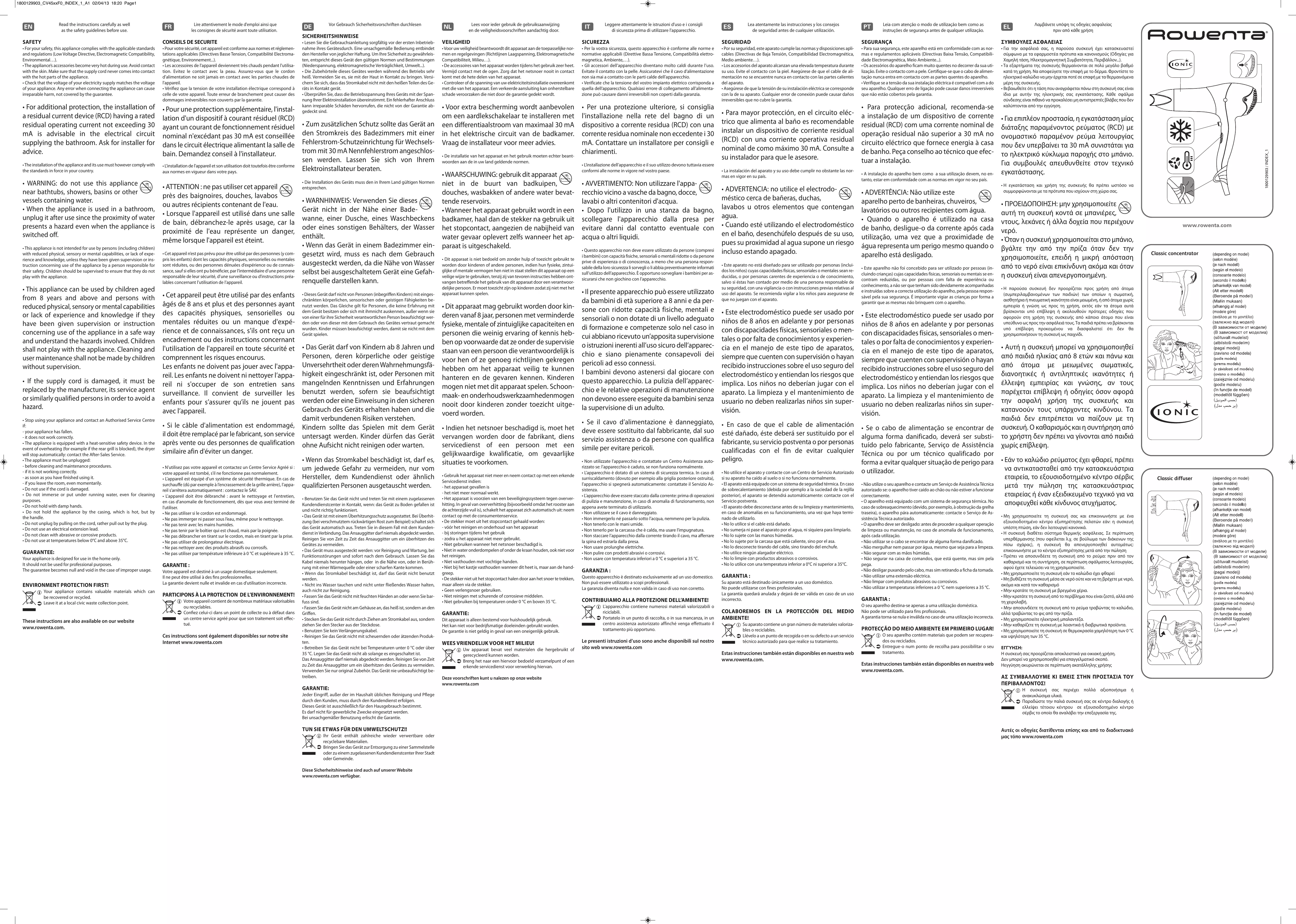 Vérifiez que la tension de votre installation électrique correspond à celle de votre apparéil. Toute erreur de branchement peut cause des dommages irréversibles non couverts par la garantie.