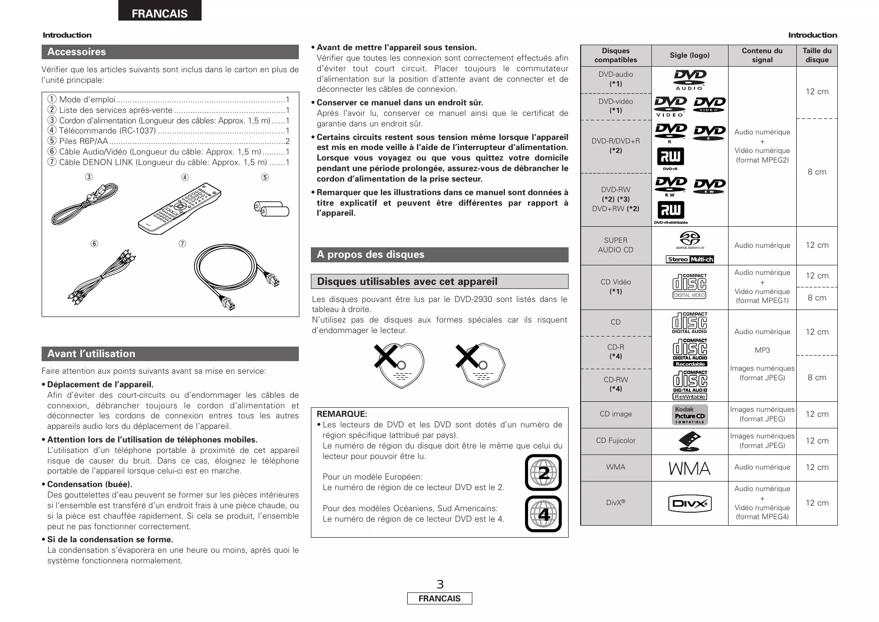 Nous you remercions d'avoir acheté ce lecteur DENON DVD Audio-Video / Super Audio CD. Veuillez dire en intégralite les instructions d'utilisation afin de vous familiariser avec le lecteur DVD Audio-Video / Super Audio CD et d'en tirer pleine satisfaction.