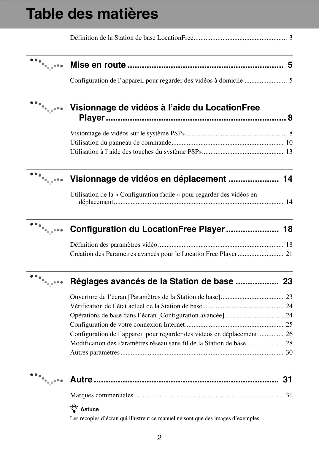 - « LocationFree » et « Memory Stick Duo » sont soit des marques commerciales, soit des marques déposées de Sony Corporation.