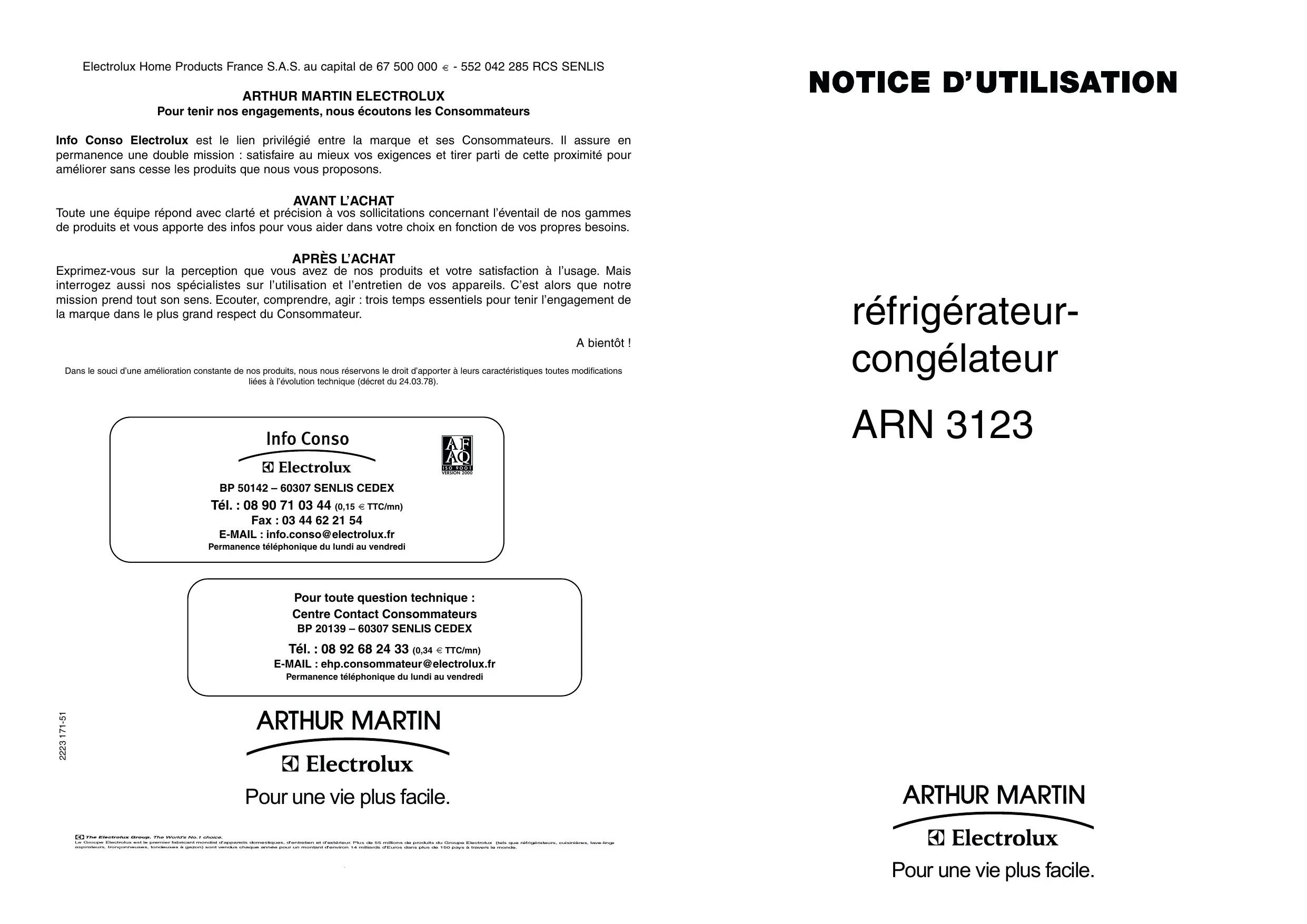 Retrouvez gratuitement la notice de l'appareil ARN 3123 ARTHUR MARTIN au format PDF.
