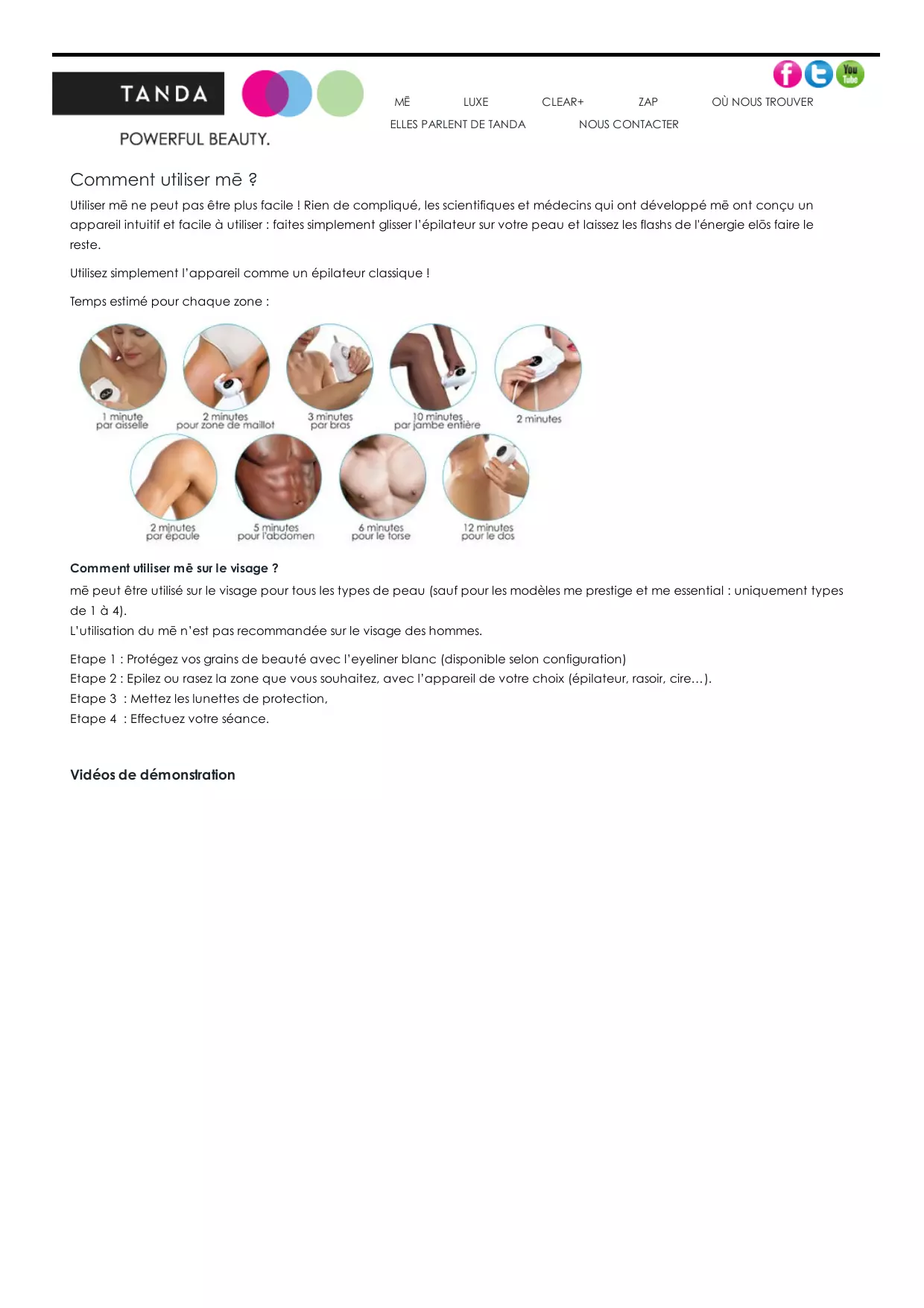 mē peut être utilisé sur le visage pour tous les types de peau (sauf pour les modèles me prestige et me essential : uniquement types de 1 à 4).