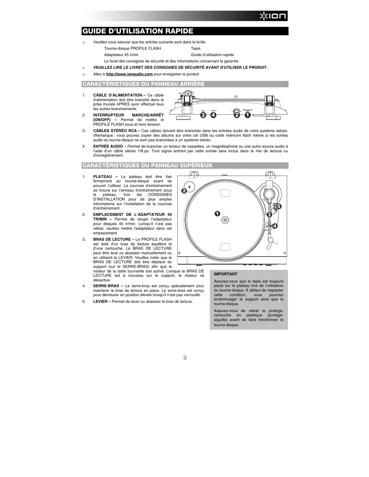 DIO PROFLASH - Tourne-disque ION - Notice d'utilisation et mode d'emploi gratuit