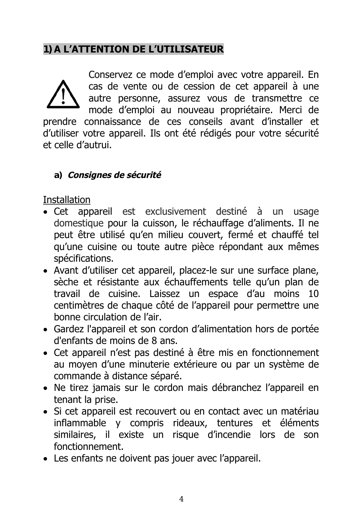 1) À L'ATTENTION DE L'UTILISATEUR 4