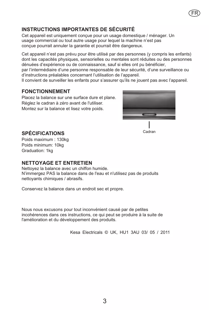 N'immergez PAS la balance dans de l'eau et n'utilise pas de produits nettoyants chimiques / abrasifs.