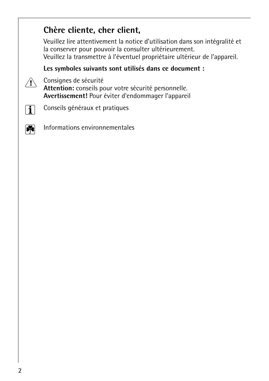 Veuillez la transmettre à l’éventuel propriétaire ultérieur de l’appareil. Les symboles suivants sont utilisés dans ce document :