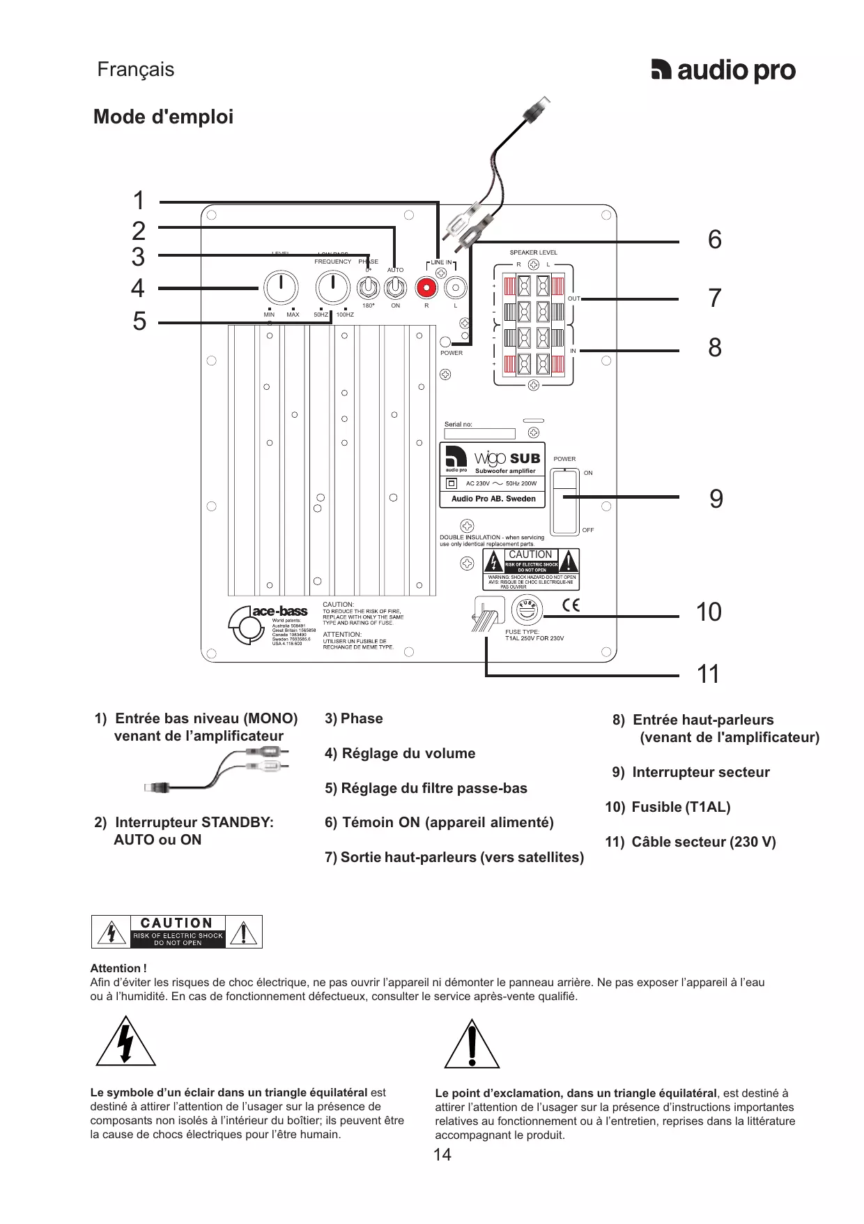 - L'Audio Pro subwoofer dispose d'une protection efficace contre les surcharges. Elle évite que votre caisson d'extrêmes-graves ne soit endommagé par des niveaux sonores trop élevés.