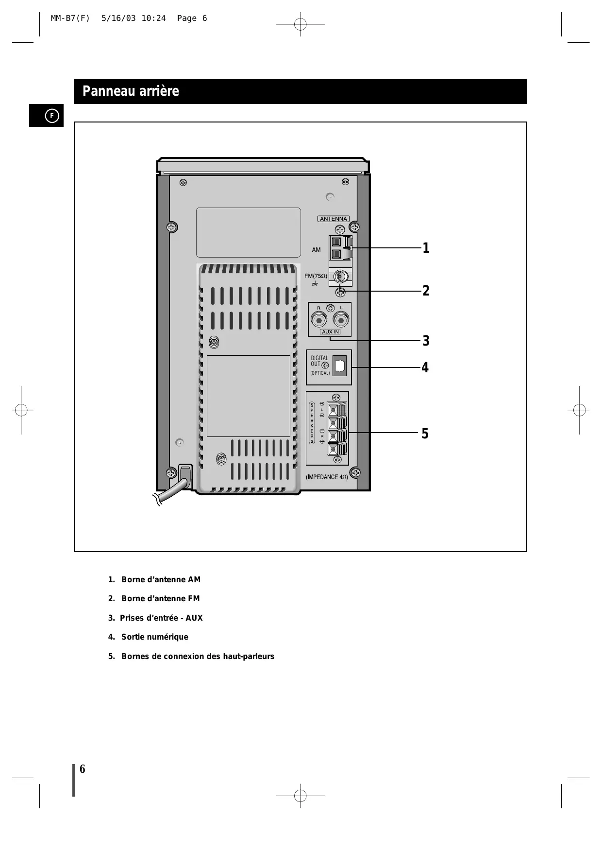 5. Bornes de connexion des haut-parleurs
