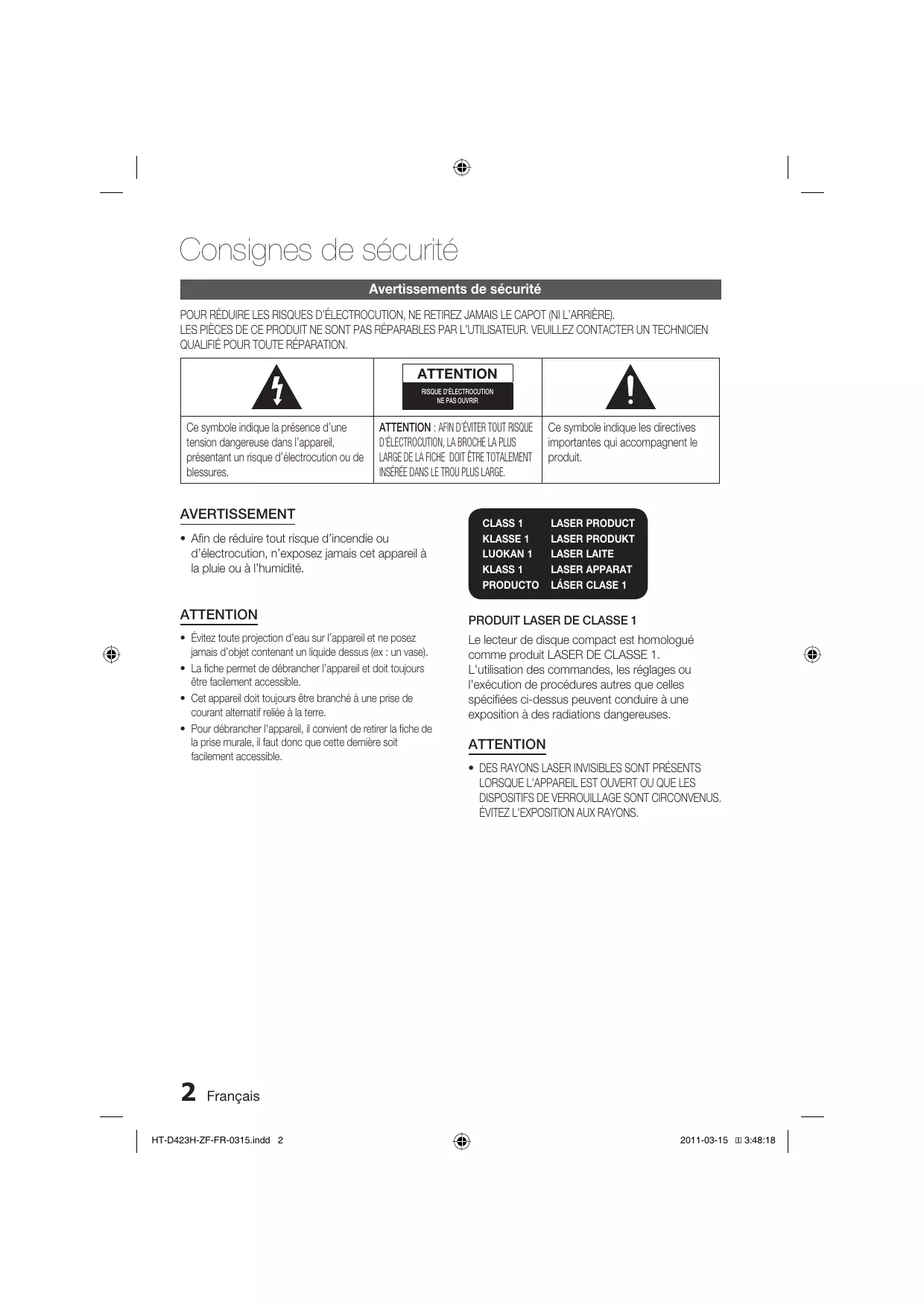 Retrouvez gratuitement la notice de l'appareil HT-D423 SAMSUNG au format PDF.