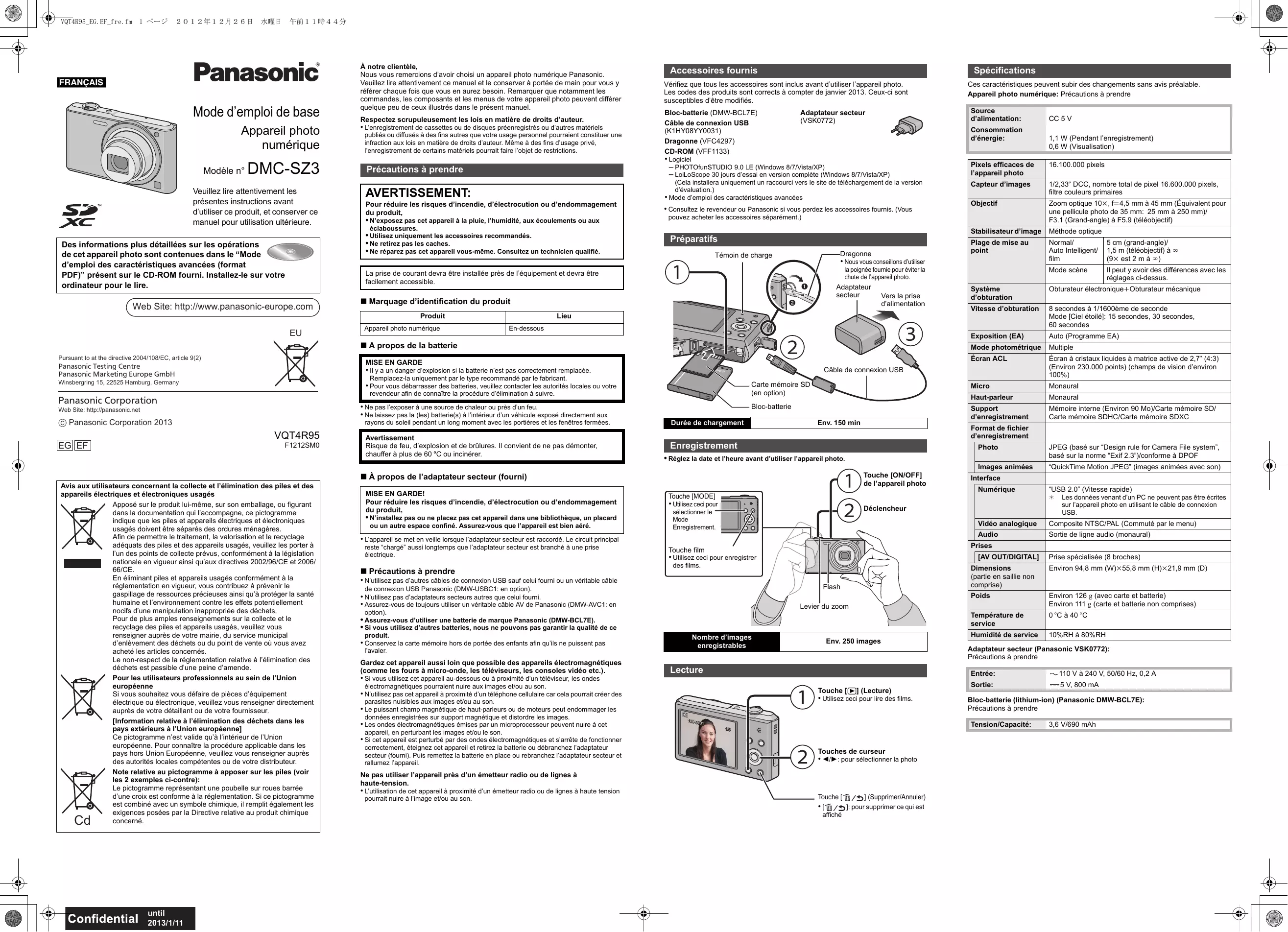 Retrouvez gratuitement la notice de l'appareil LUMIX DMC-SZ3 PANASONIC au format PDF.