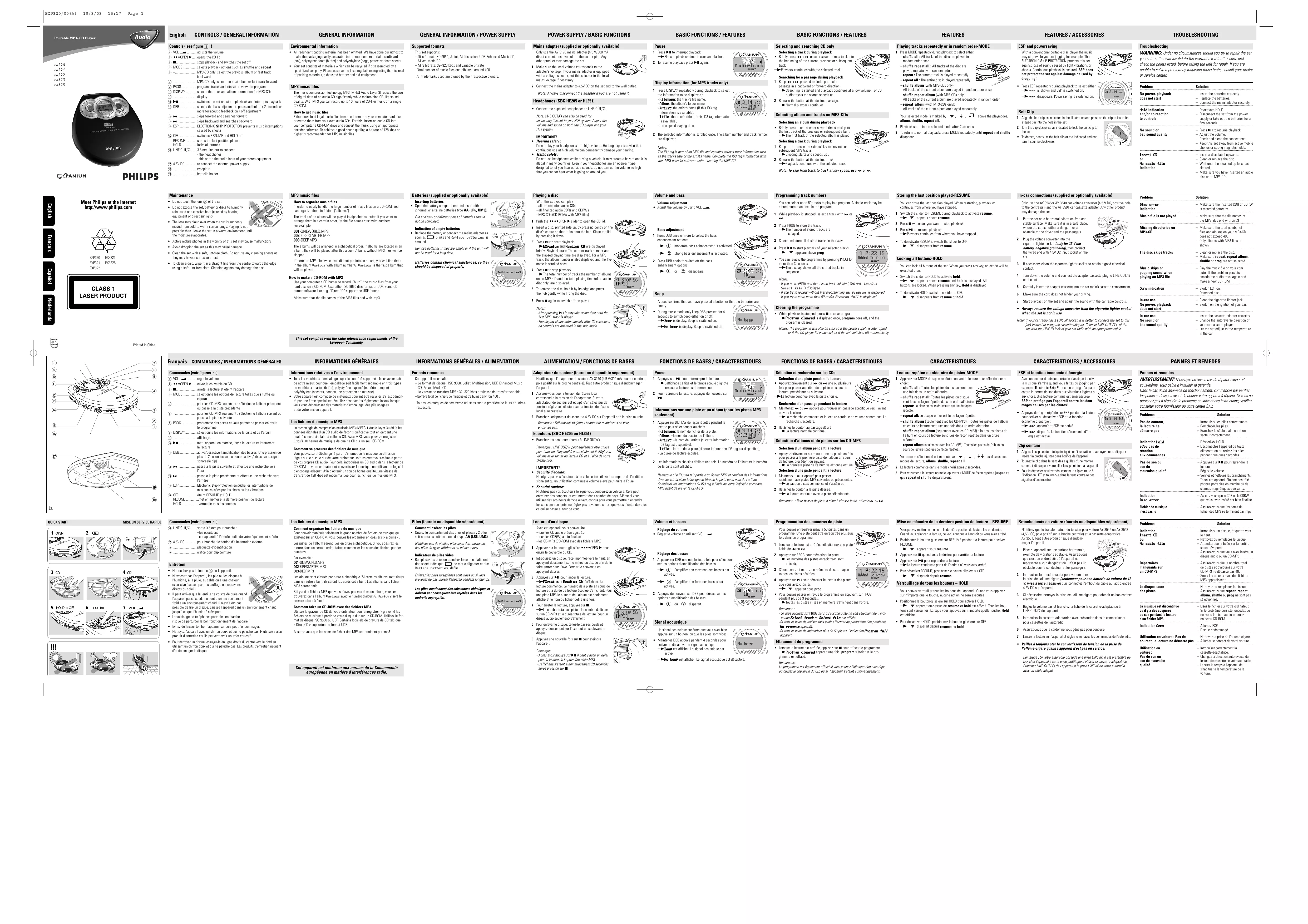 EXP320 - Lecteur CD portable PHILIPS - Notice d'utilisation et mode d'emploi gratuit
