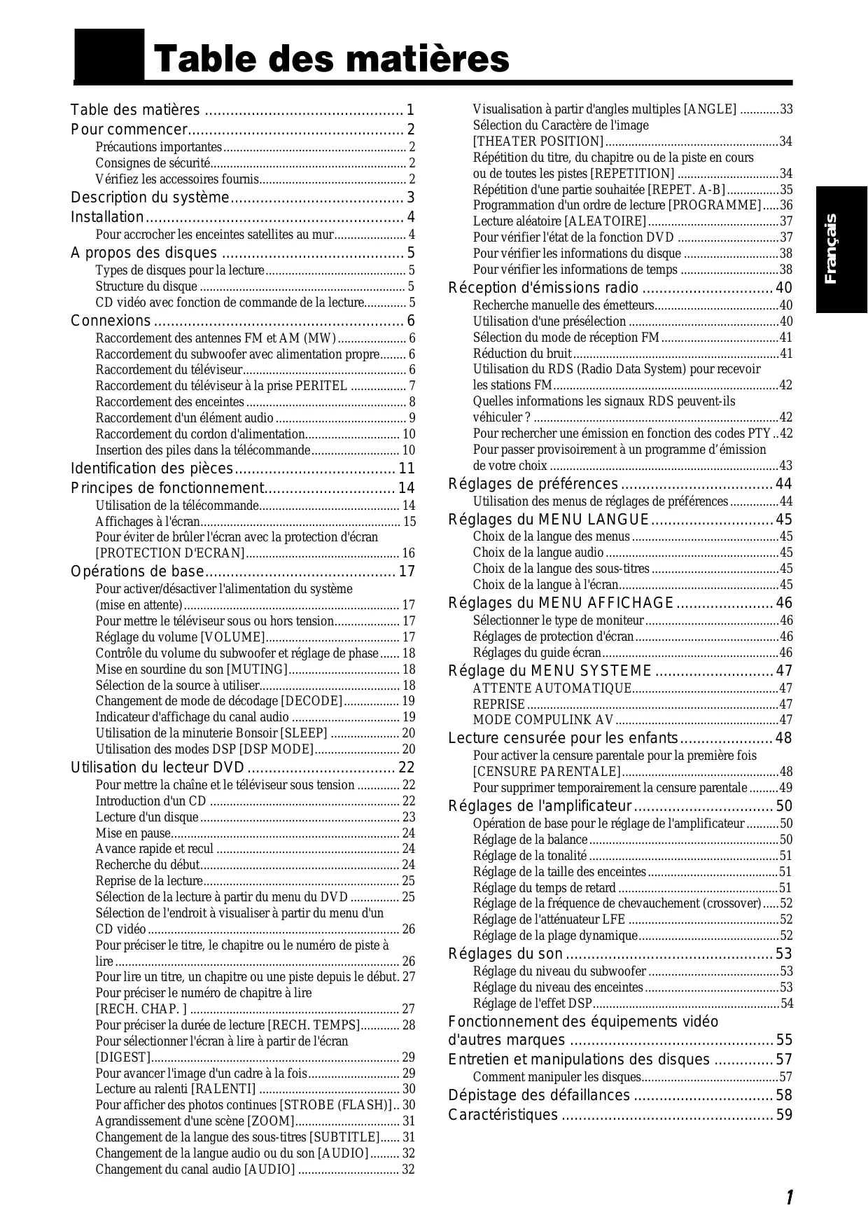 Composants inclusLecteur DVD, amplificateur, 5 enceintes, caisson de basses