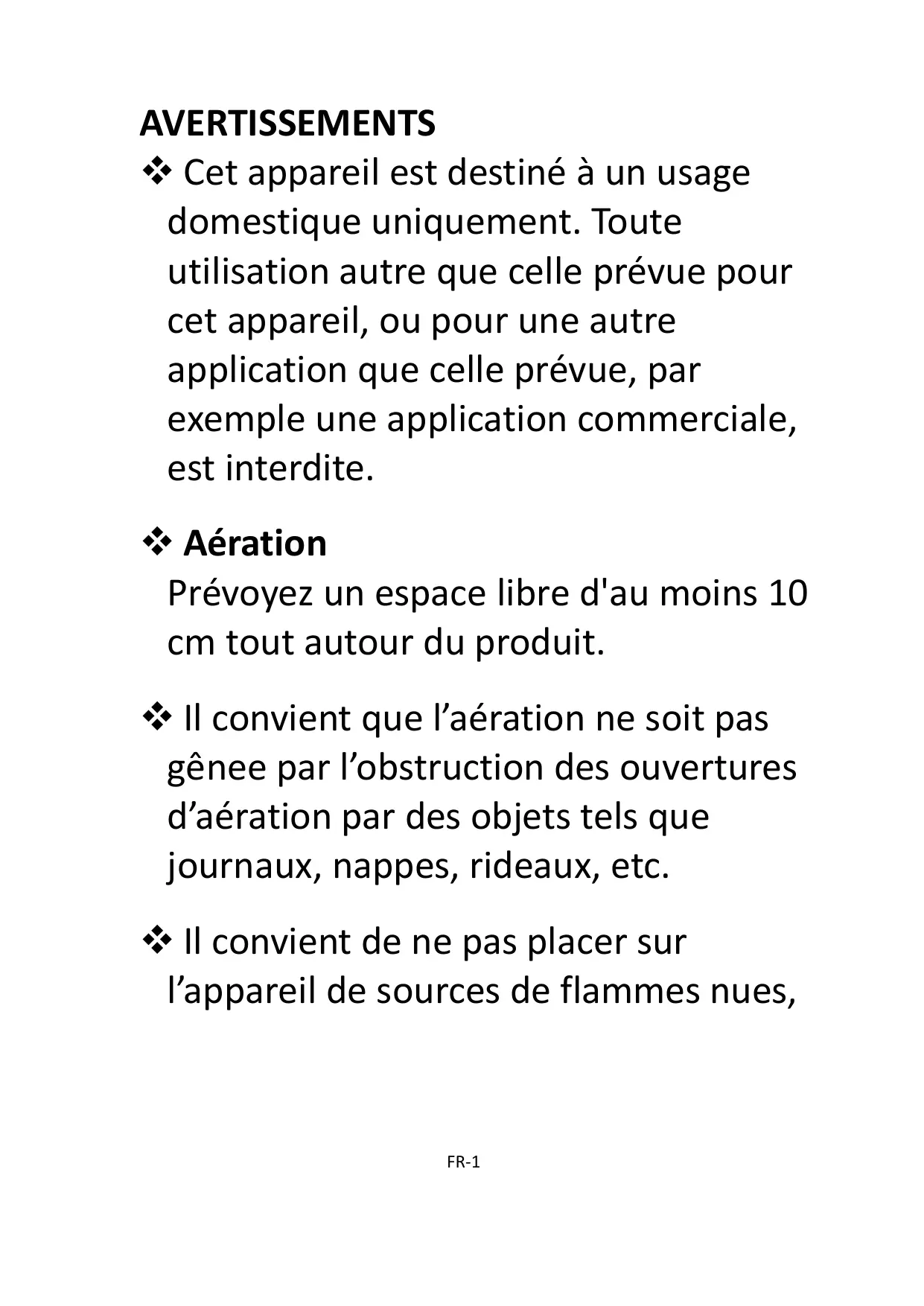 Il convient que l'aération ne soit pas génée par l'obstruction des ouvertures d'aération par des objets tels que journaux, nappes, ridesaux, etc.