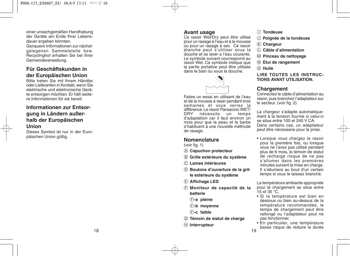 ES8807S803 - Rasoir électrique PANASONIC - Notice d'utilisation et mode d'emploi gratuit