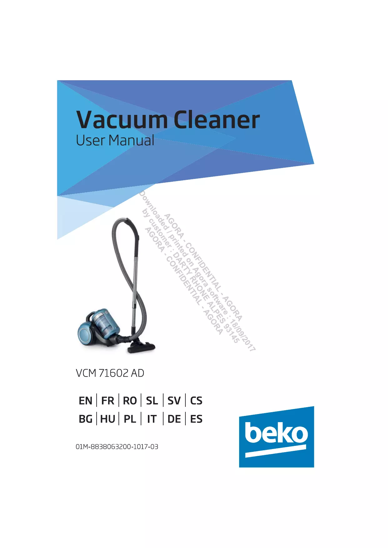 VCM1602AD - Aspirateur BEKO - Notice d'utilisation et mode d'emploi gratuit