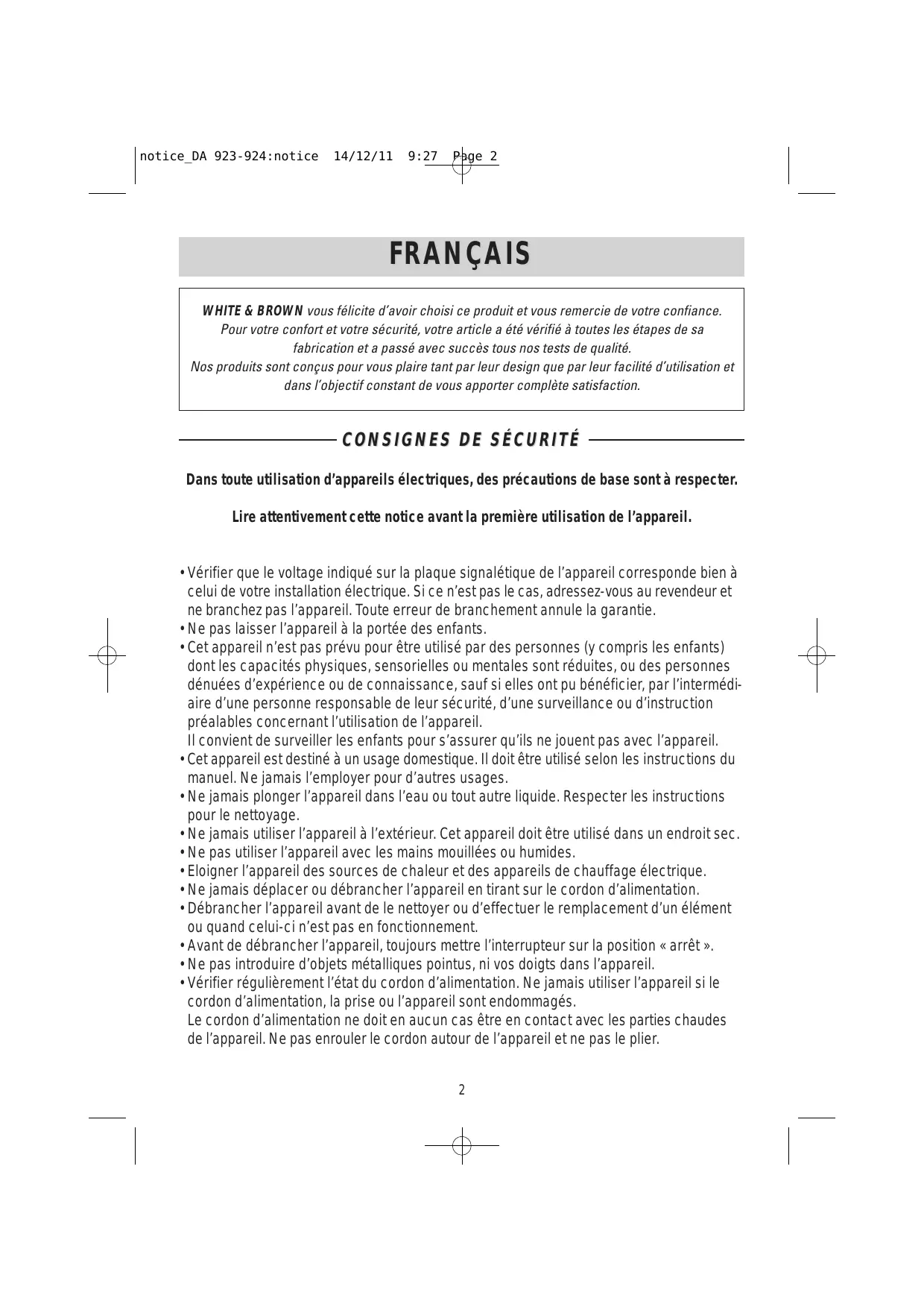 WHITE & BROWN you felicite d'avoir choisi ce produit et vous remercie de votre confiance.