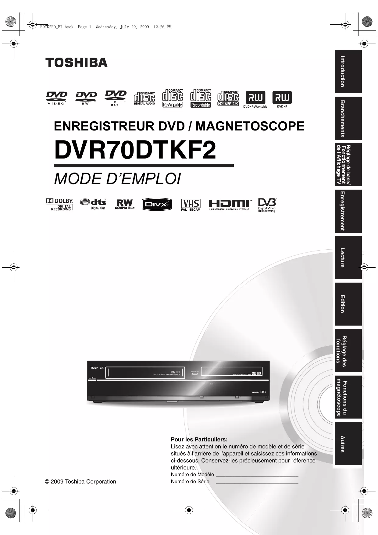 DVR-70DT - Enregistreur DVD TOSHIBA - Notice d'utilisation et mode d'emploi gratuit