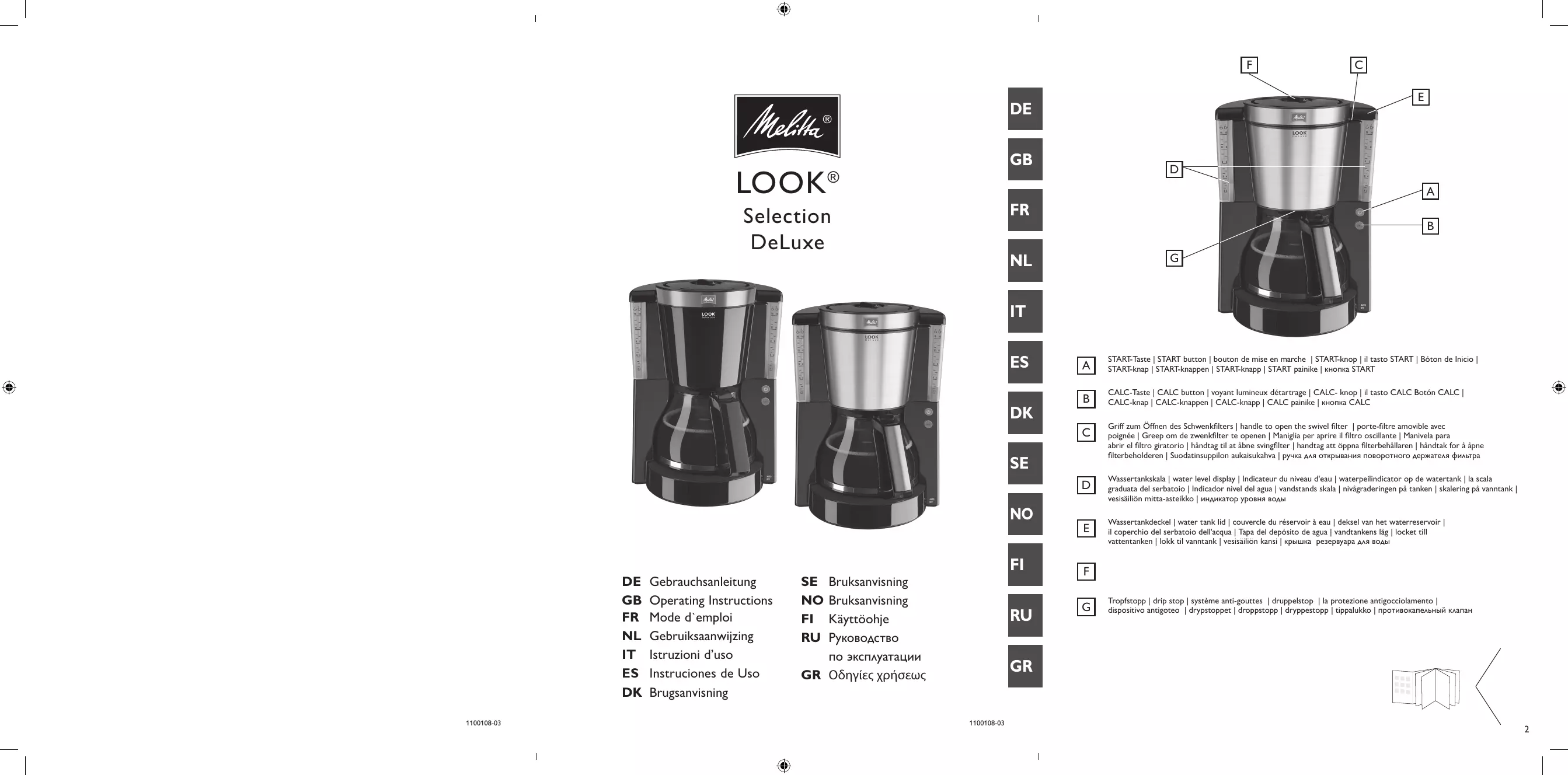 - Les matériaux d'emballage sont des matières premières et recyclables. Veuillez les réintégrer dans le circuit des matières premières. Beste klant, Hartelijk dank dat u gekozen hebt voor ons filterkoffiezetapparaat Look®. Wij wensen u veel plezier met uw aankoop. Deze gebruiksaanwijzing helpt u de veelzijdige mogelijkheden van het apparaat te leren kennen en zo het opperste koffiegenot te beleven. Wanneer u aanvullende informatie wenst of vragen heeft, kunt u contact opnemen met Melitta® of onze website bezoeken: www.melitta.be of www.melitta.nl Voor uw veiligheid Het apparaat voldoet aan de geldende Europese richtlijnen. Het apparaat is door onafhankelijke testinstituten gecontroleerd en gecertificeerd: Neem de veiligheidsinstructies en de gebruiksaanwijzing volledig door. Neem de veiligheids- en bedieningsinstructies in acht om gevaren te voorkomen. In geval van niet-naleving aanvaardt Melitta® geen aansprakelijkheid voor de eventueel ontstane schade.