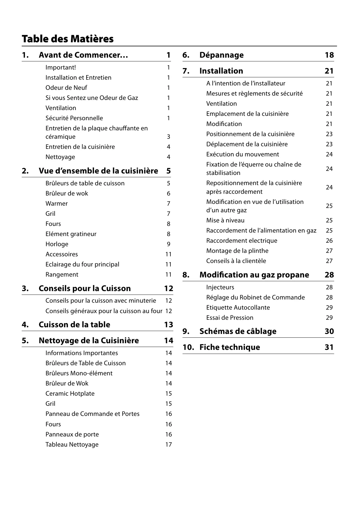 Nous vous remercions d'avoir acheté cette cusinière. Installée et utilisée correctement, cette cusinière vous donna de nombreuses années de service fiable. Il est important de dire la presente section avant de commencer, en particulier si vous n'avez jamais utilisé de cusinière mixte.