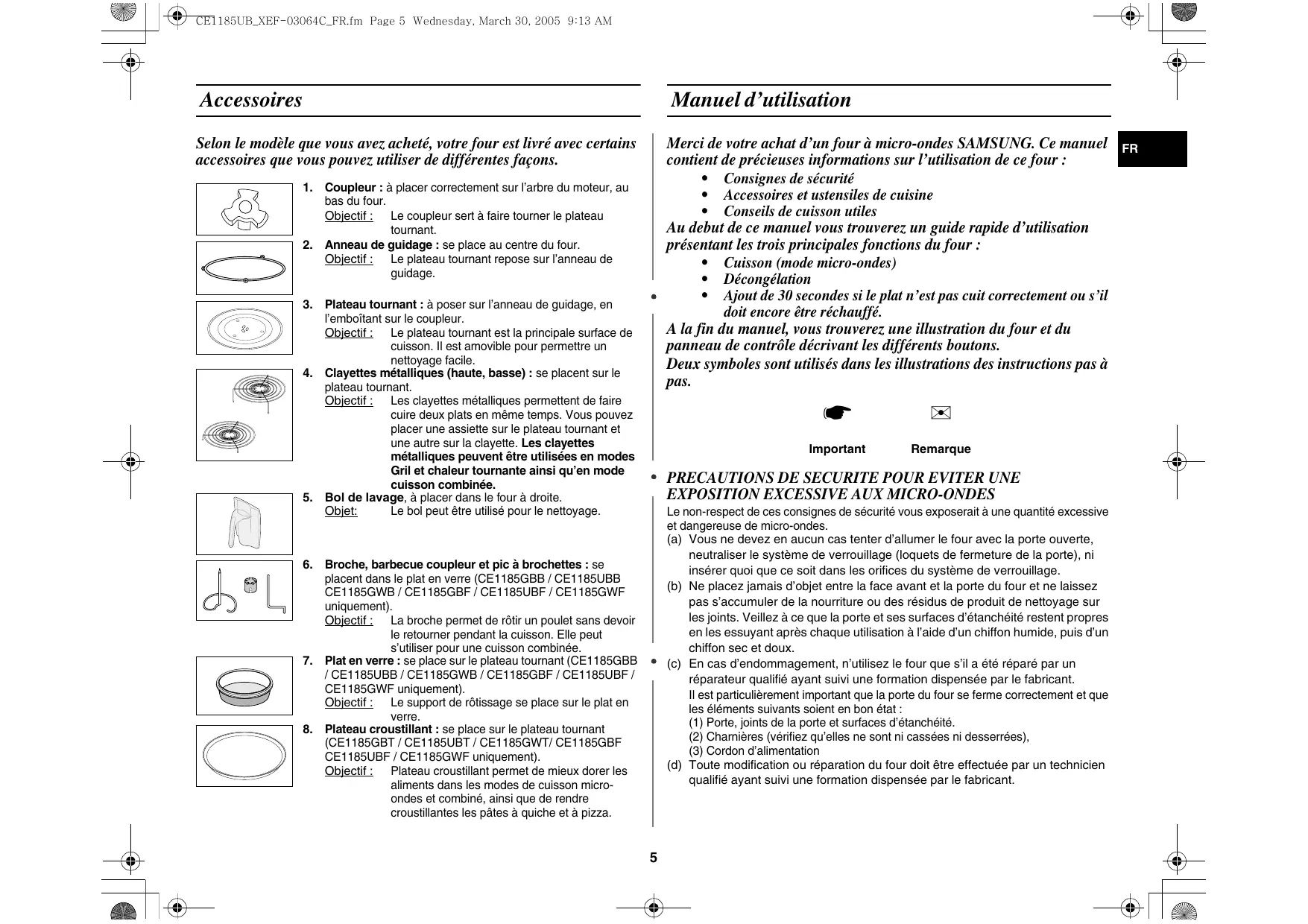PANNEAU DE CONTROLE ENCOCHES DE VERROUILLAGE ANNEAU DE GUIDAGE CE1185UB_XEF-03064C_FR.fm Page 5 Wednesday, March 30, 2005 9:13 AM Accessoires