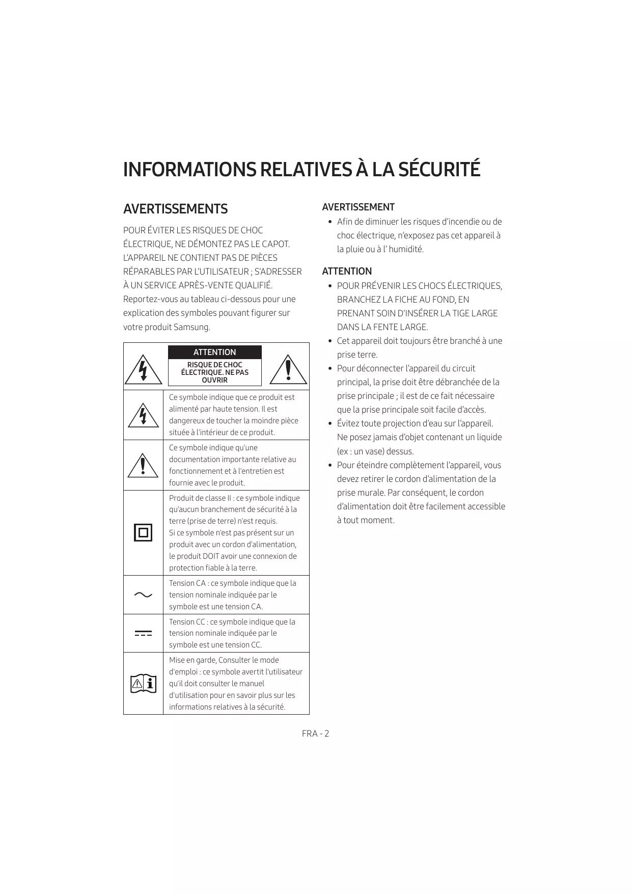 ATTENTION ࡙ POUR PRÉVENIR LES CHOCS ÉLECTRIQUES,