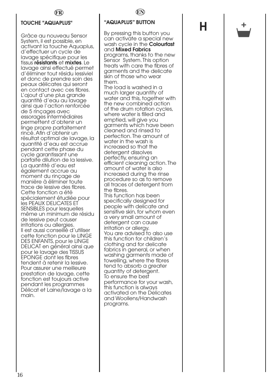 | Cycle automatique de lavage/sechage | Automatic washing/Drying cycle | 12 |