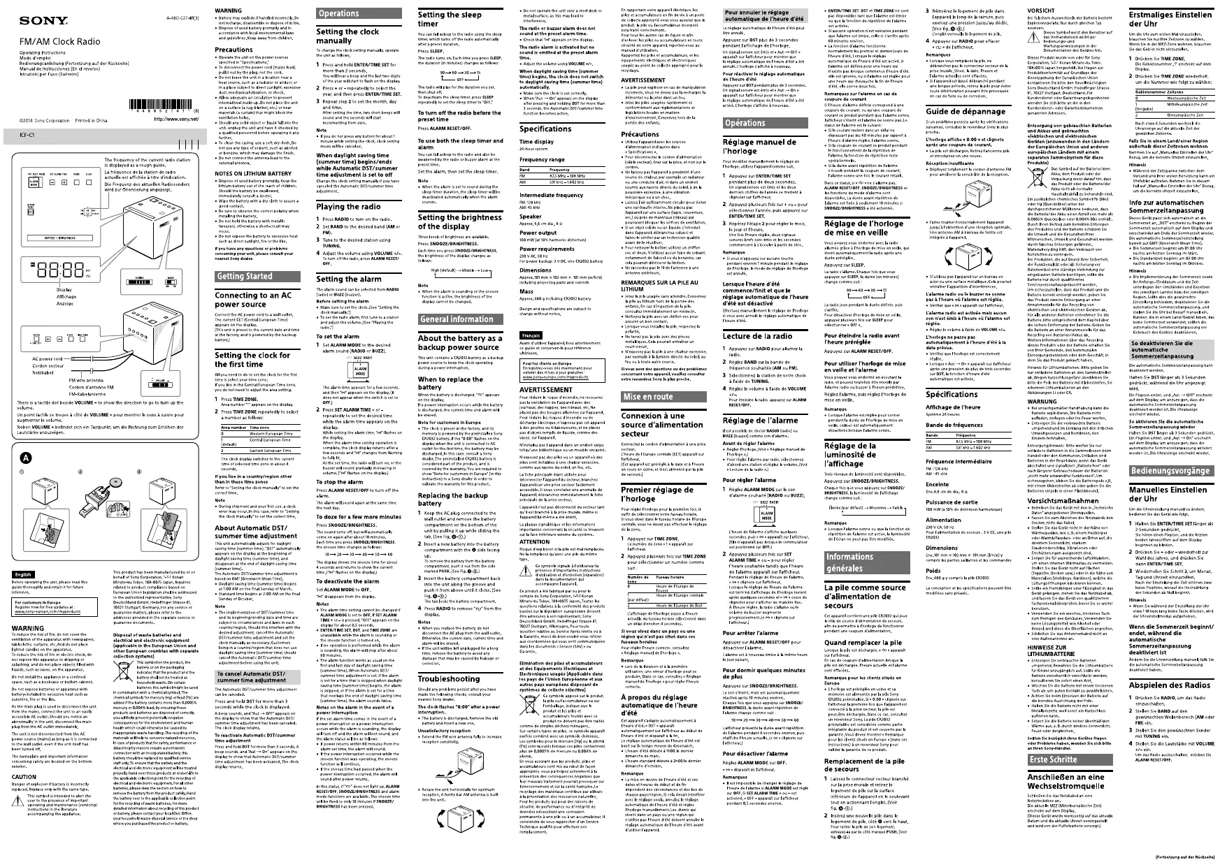 I CFC1W - Radio Réveil SONY - Notice d'utilisation et mode d'emploi gratuit