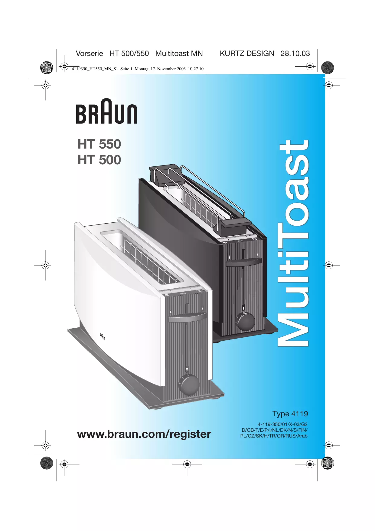 HT500 - Grille-pain BRAUN - Notice d'utilisation et mode d'emploi gratuit
