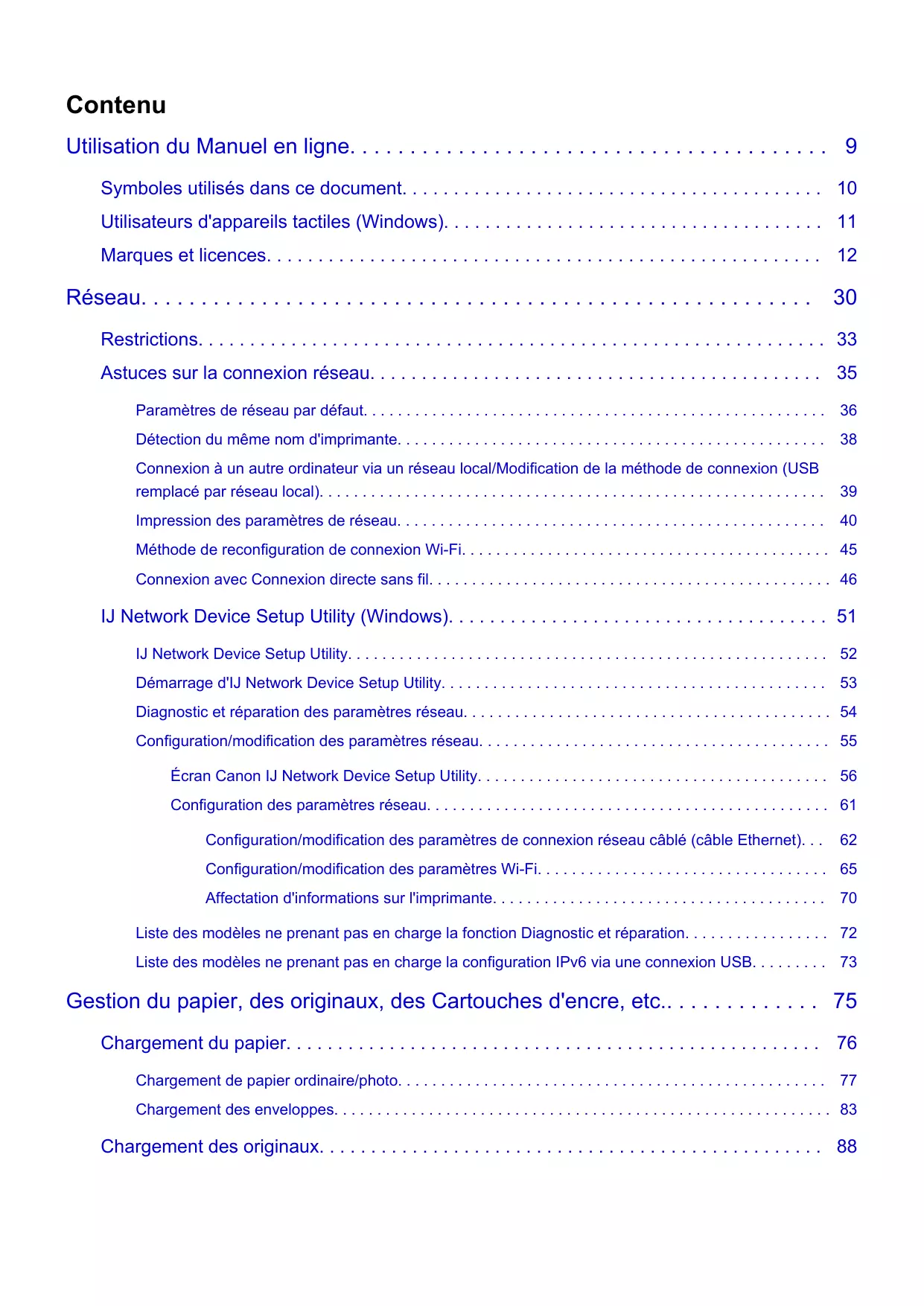 Paramètres/Configuration de connexion réseau Procédez à la configuration de la connexion pour l'imprimante et l'ordinateur, le smartphone ou la tablette. Pour plus d'information sur la procédure de configuration, cliquez ici. Modification des paramètres réseau Voir ci-dessous pour modifier les paramètres de connexion de l'imprimante et de l'ordinateur, du smartphone ou de la tablette. • Pour modifier la méthode de connexion réseau : Méthode de reconfiguration de connexion Wi-Fi Modification du mode de connexion • Pour ajouter un ordinateur, un smartphone ou une tablette à l'imprimante : Connexion à un autre ordinateur via un réseau local/Modification de la méthode de connexion (USB remplacé par réseau local) • Pour utiliser la connexion directe sans fil temporairement : Connexion avec Connexion directe sans fil IJ Network Device Setup Utility IJ Network Device Setup Utility vérifie ou diagnostique les paramètres de l'imprimante et de l'ordinateur ; il en restaure l'état en cas d'erreur liée à la connexion réseau. Sélectionnez un lien ci-dessous pour télécharger IJ Network Device Setup Utility. Vérification de l'état de la connexion de l'imprimante à l'aide de IJ Network Device Setup Utility • Configuration/Modification des paramètres réseau (Windows) Pour Windows, vous pouvez utiliser IJ Network Device Setup Utility pour configurer les paramètres réseau. IJ Network Device Setup Utility (Windows) • Établissement de diagnostics et réparation des paramètres réseau (Windows/macOS) Vous pouvez utiliser IJ Network Device Setup Utility pour diagnostiquer ou réparer les paramètres réseau. ◦ Pour Windows : IJ Network Device Setup Utility (Windows) ◦ Pour macOS : IJ Network Device Setup Utility (macOS) Astuces sur la connexion réseau Les informations ci-dessous vous proposent quelques astuces sur l'utilisation de l'imprimante via une connexion réseau. Astuces sur la connexion réseau Gestion la configuration de l'imprimante à l'aide d'un navigateur Web Mesures contre l'accès non autorisé