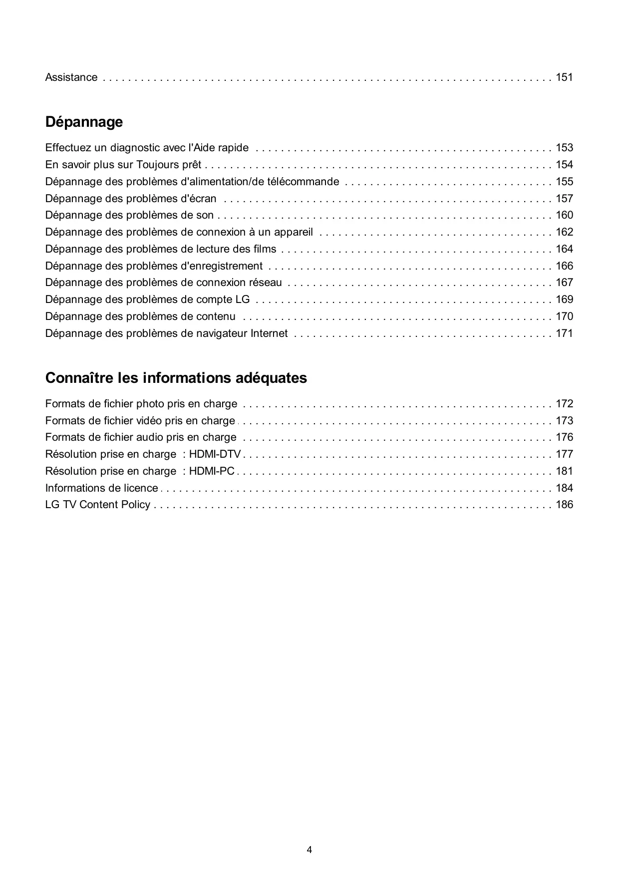 Vérifiez si votre appareil connecté prend en charge la fonction Screen Share. Si le téléviseur n'est pas détecté sur votre appareil connecté, éteignez l'appareil connecté et le téléviseur, puis rallumez-les. Assurez-vous d'avoir sélectionné le téléviseur dans la liste des appareils trouvés sur votre appareil connecté. 163