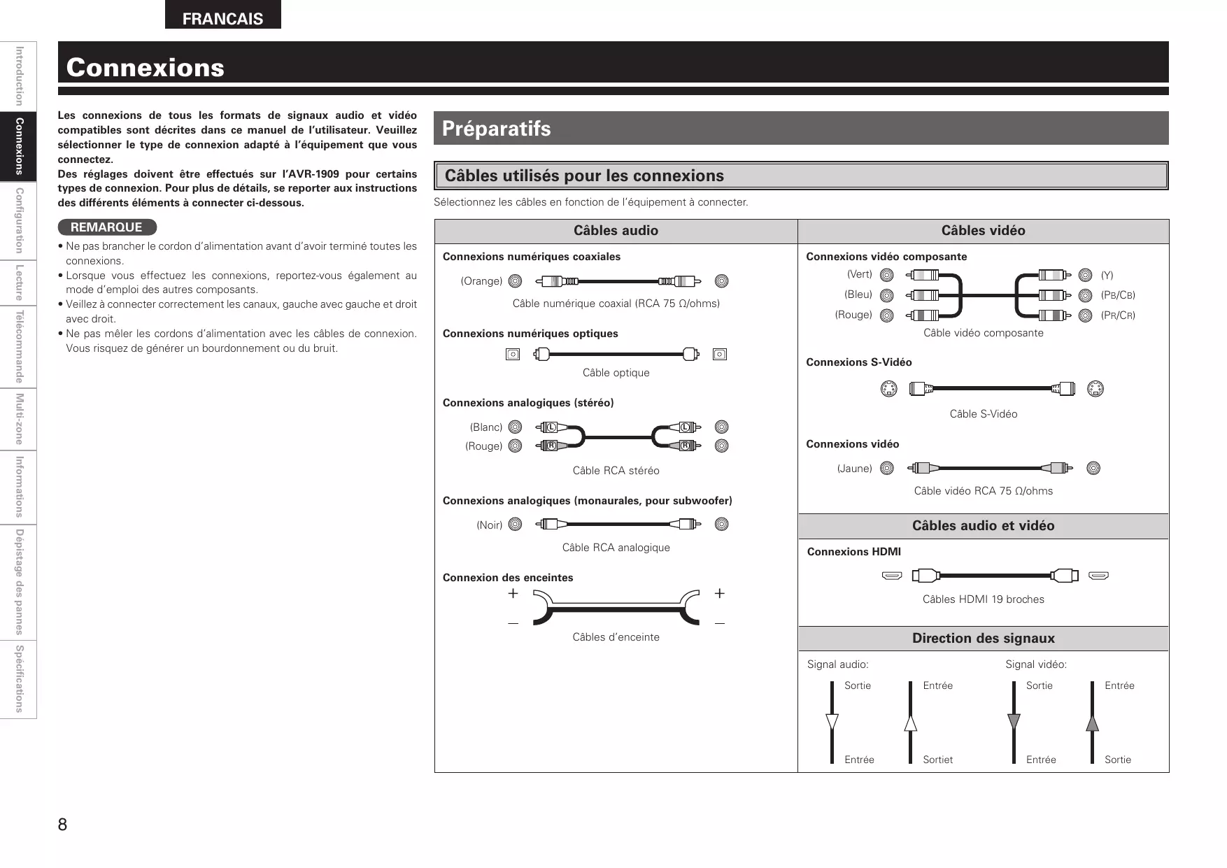 Téléchargez la notice de votre Amplificateur audio-vidéo au format PDF gratuitement ! Retrouvez votre notice AVR-1909 BKE2 - DENON et reprennez votre appareil électronique en main. Sur cette page sont publiés tous les documents nécessaires à l'utilisation de votre appareil AVR-1909 BKE2 de la marque DENON.