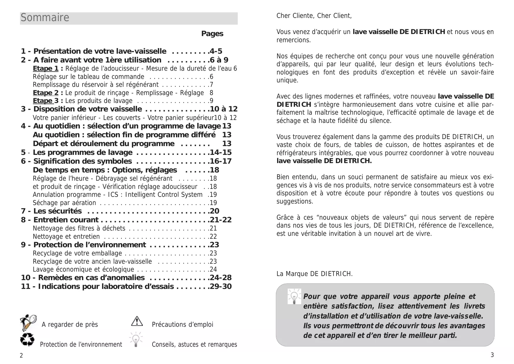 Pour que votre appareil vous apporte pleine et entière satisfaction, lisez attentivement les livrets d’installation et d’utilisation de votre lave-vaisselle. Ils vous permettront de découvrir tous les avantages de cet appareil et d’en tirer le meilleur parti. 3
