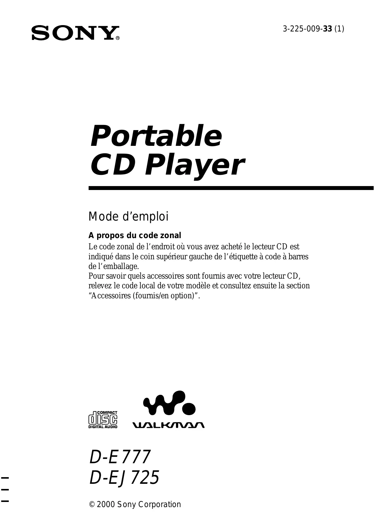 D-E777 D-EJ725 © 2000 Sony Corporation