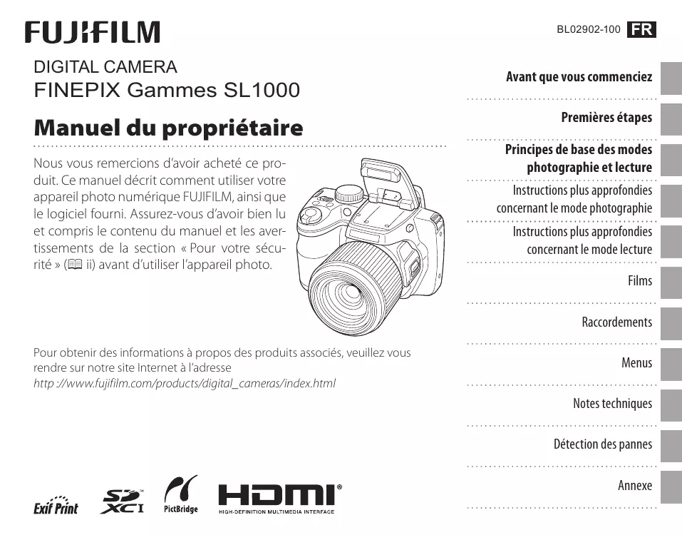 Retrouvez gratuitement la notice de l'appareil FINEPIX SL1000 FUJIFILM au format PDF.