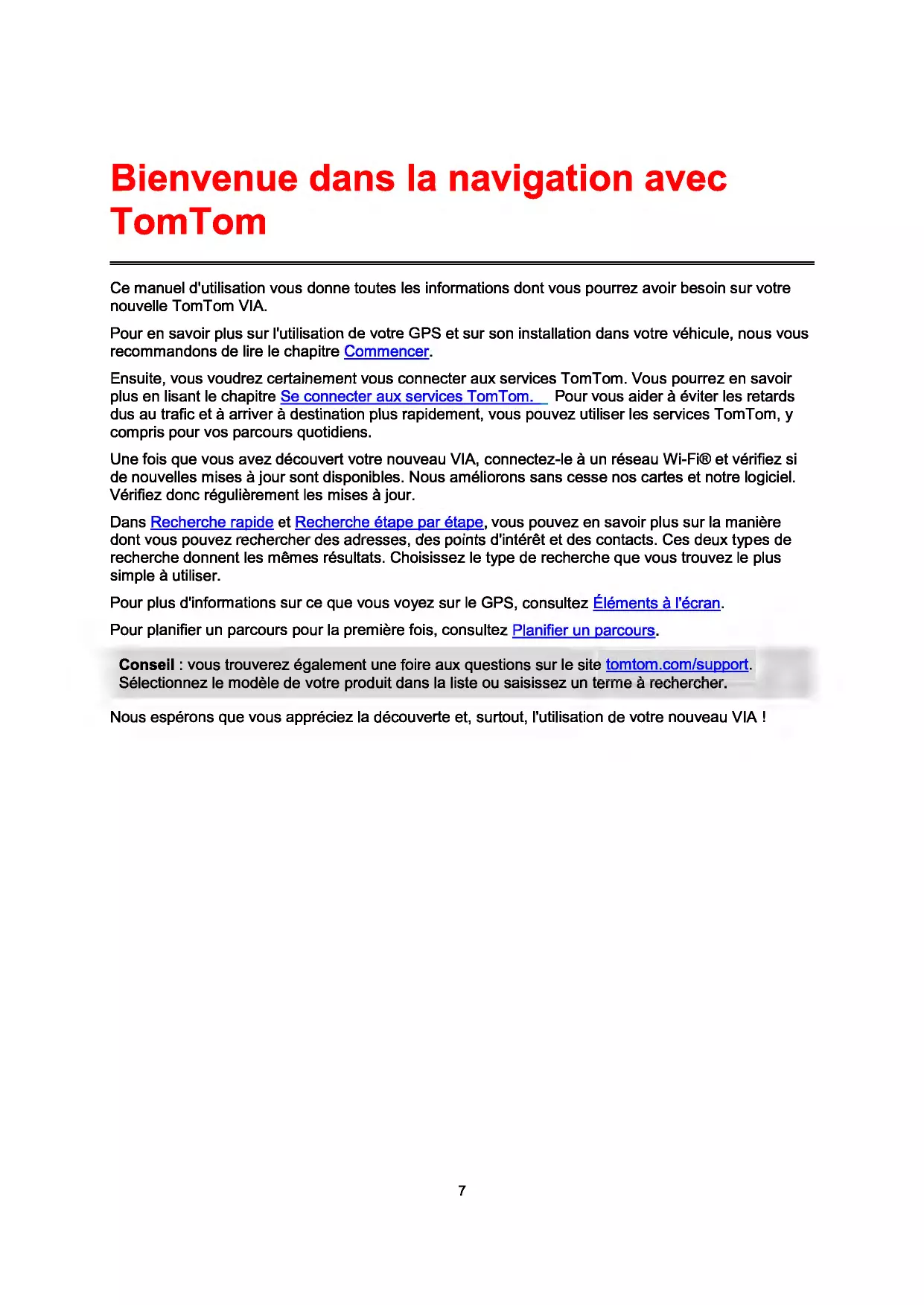 Comment obtenir davantage d'aide Rendez-vous sur tomtom.com/getstarted pour voir des vidéos, accéder aux foires aux questions et bien plus encore. Avis Si vous aimez utiliser votre VIA, pourquoi ne pas donner votre avis sur votre boutique en ligne préférée ? Vous aiderez les autres conducteurs à faire le bon choix et vos commentaires nous aideront à nous améliorer.