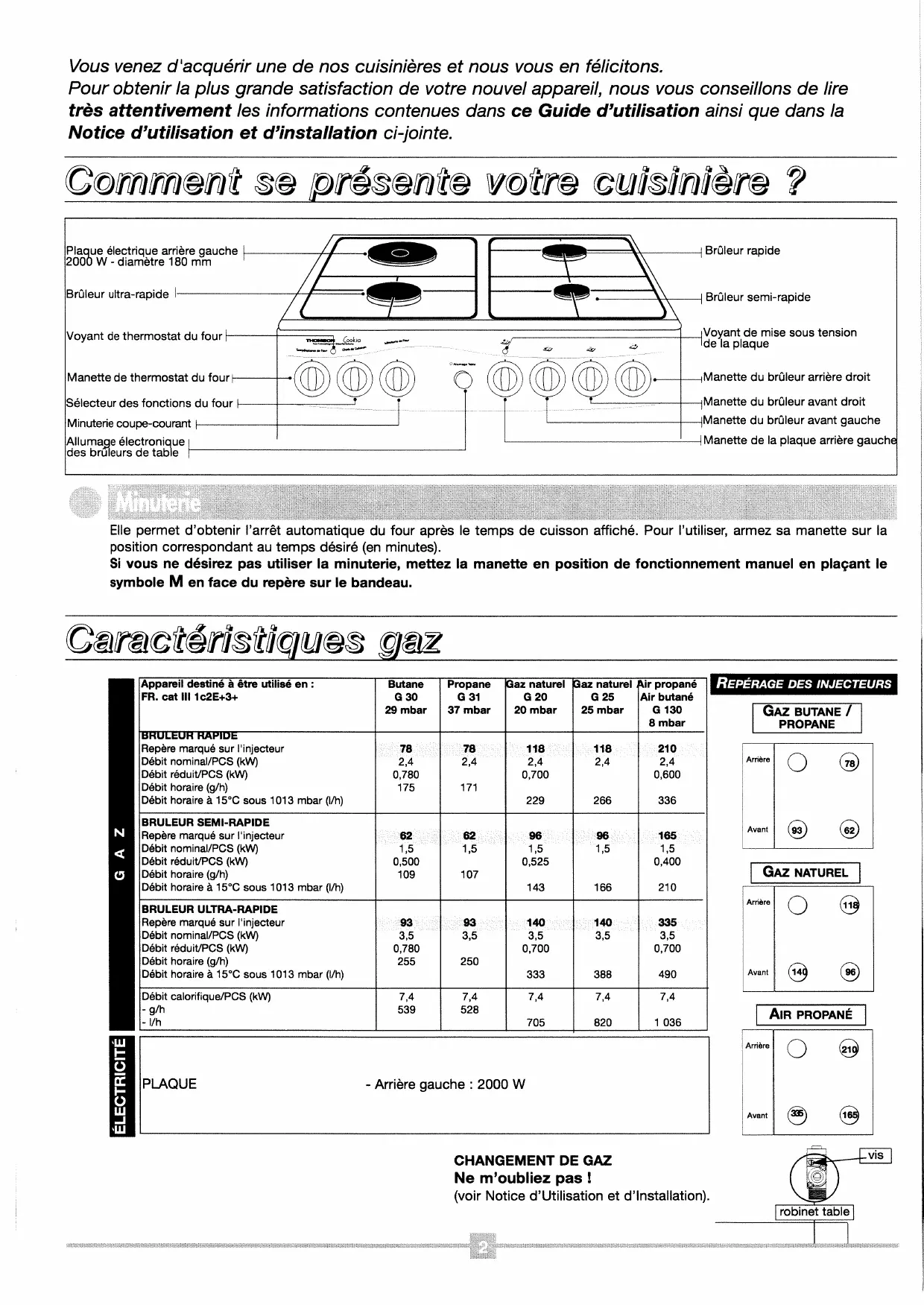 | Voyants | Thermostat four et mise sous tension plaque |