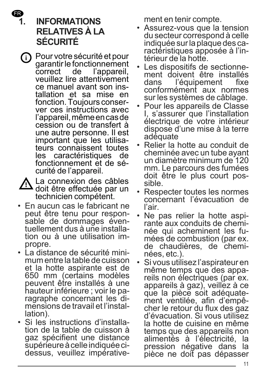- Ne jamais laisser un feu vif allumé sous la hotte lorsque celle-ci est en fonction.
