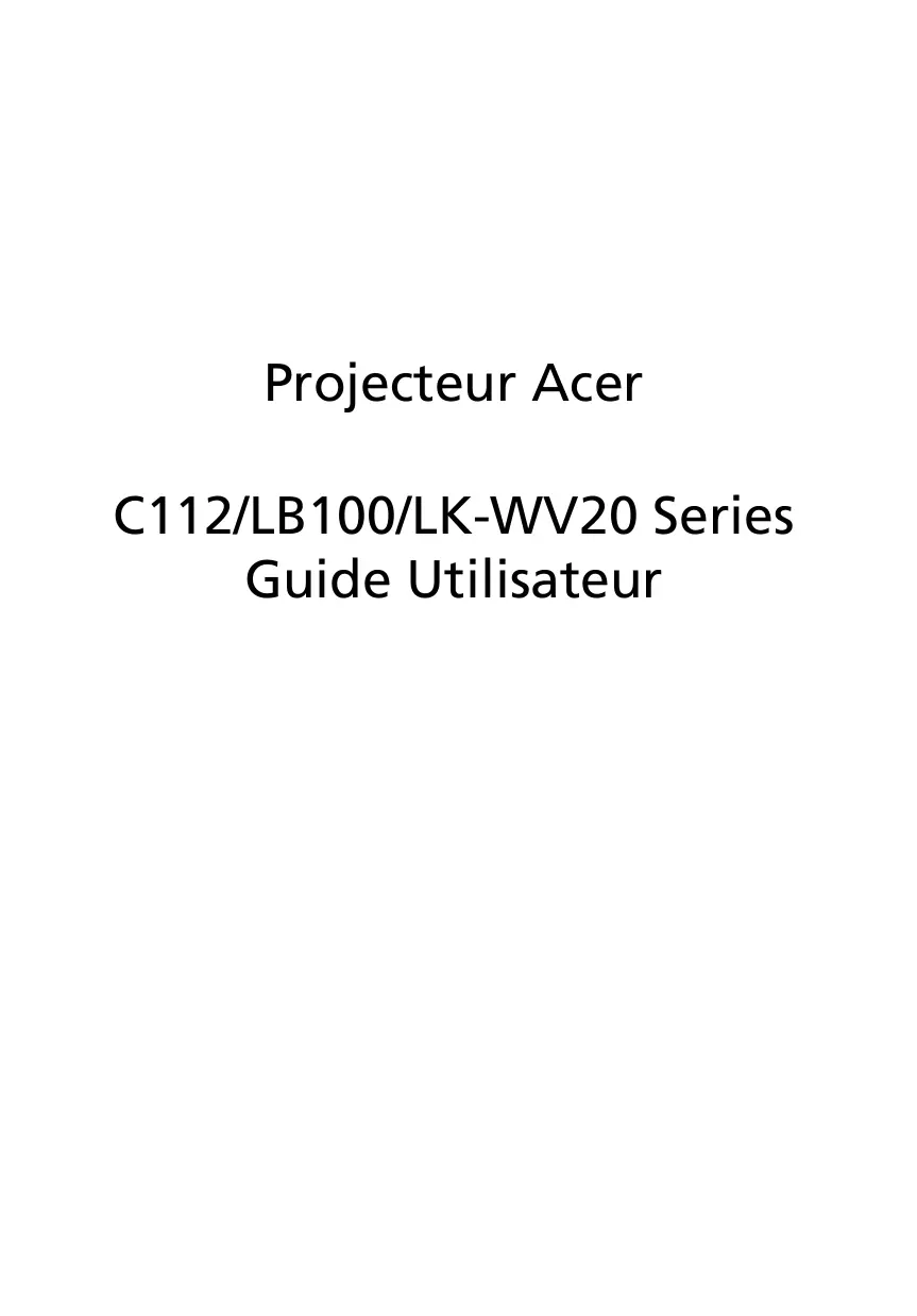 Projecteur Acer C112/LB100/LK-WV20 Series Guide Utilisateur