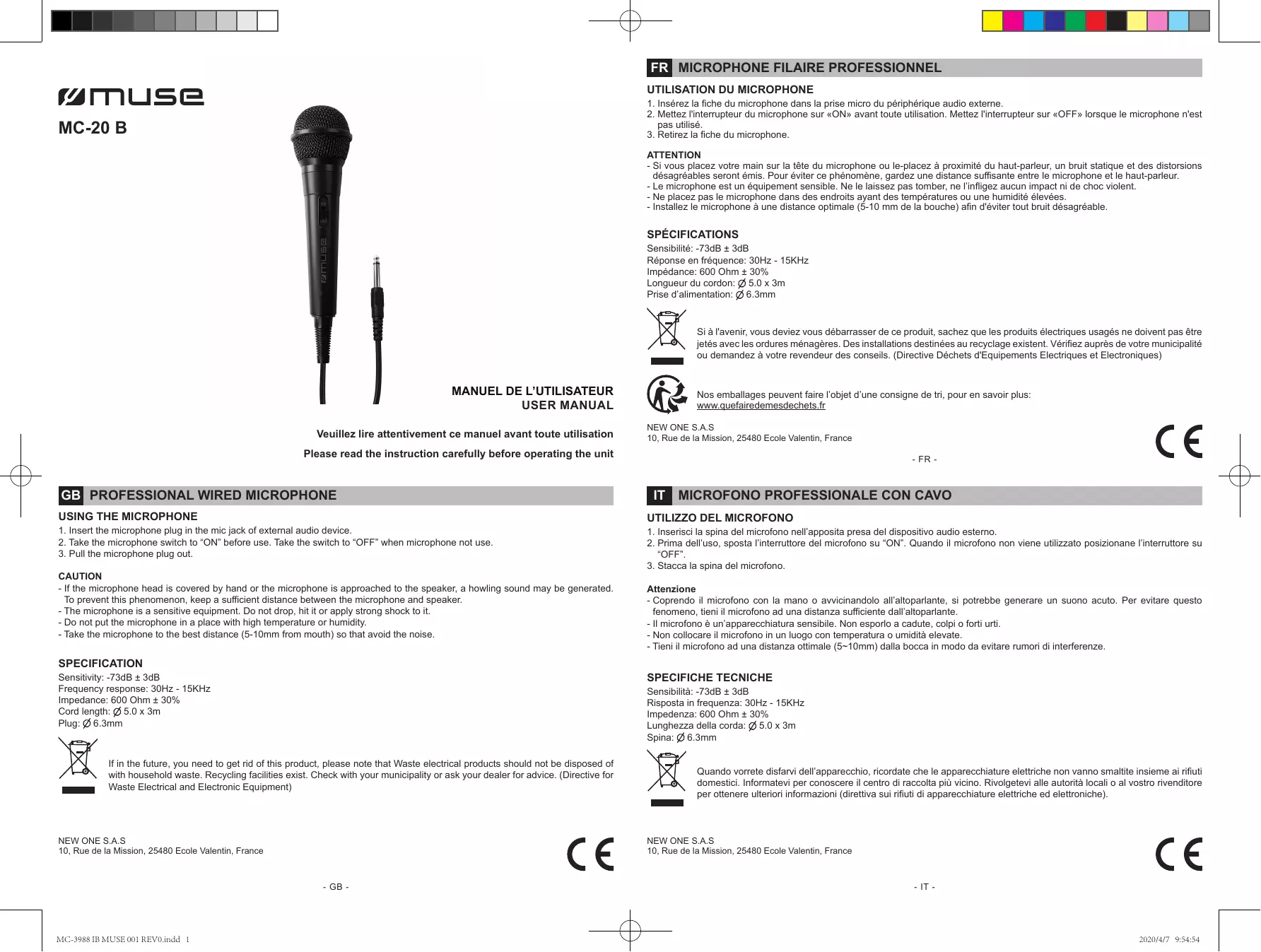MUSELUMIERE DJMC-20 B - Microphone filaire MAE DARRY - Notice d'utilisation et mode d'emploi gratuit