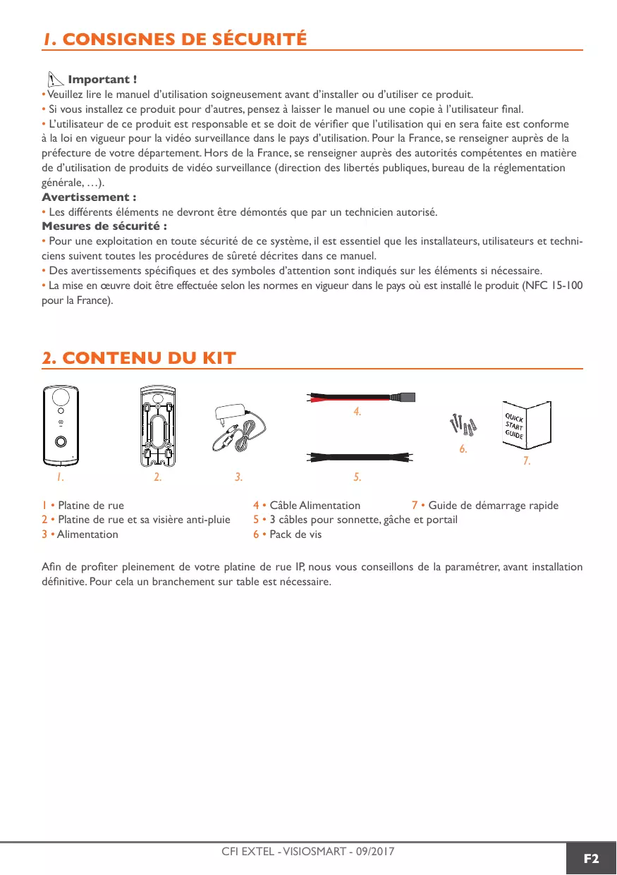 1 • Platine de rue 2 • Platine de rue et sa visière anti-pluie 3 • Alimentation