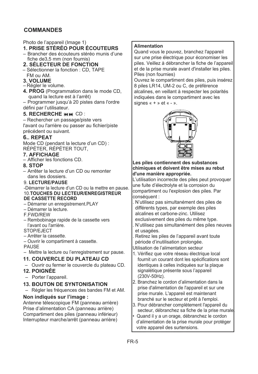 | Type d'appareil | Radio lecteur CD portable |