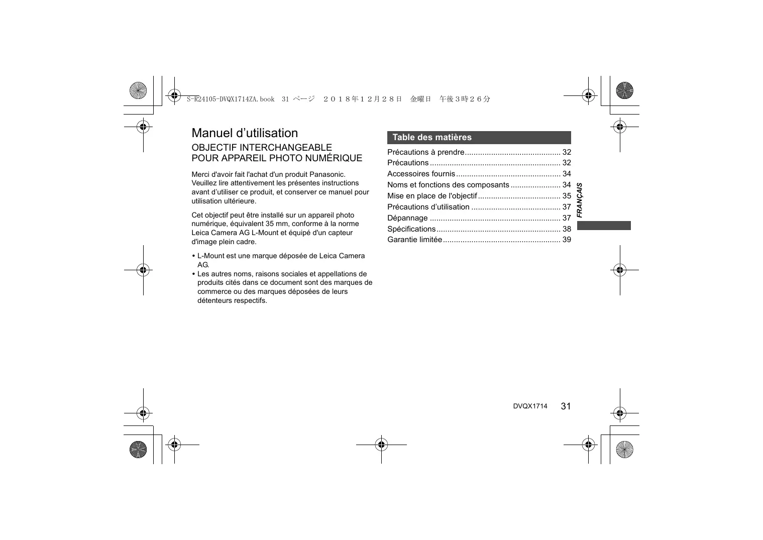 bah5S 24-1054 - Objectif d'appareil photo numérique PANASONIC - Notice d'utilisation et mode d'emploi gratuit