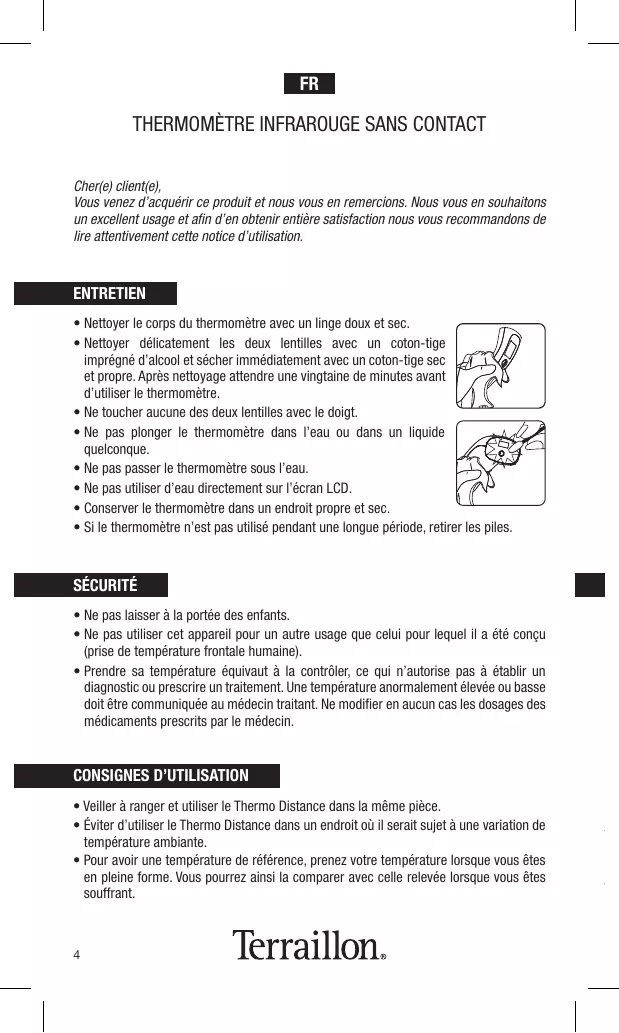THERMODISTANCE - Thermomètre médical TERRAILLON - Notice d'utilisation et mode d'emploi gratuit