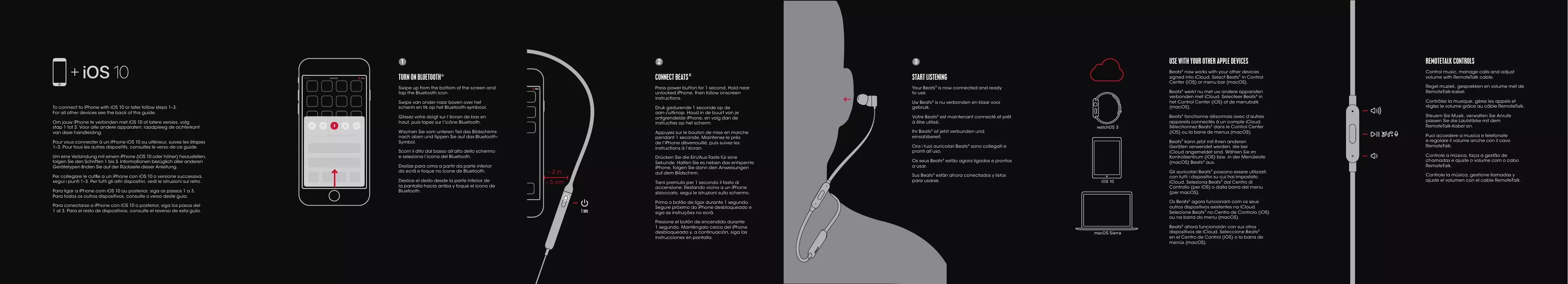 Pour vous connecter à un iPhone iOS 10 ou ultérieur, suivez les étapes 1-3. Pour nous les autres disposibles, consultez le verso de ce guide.