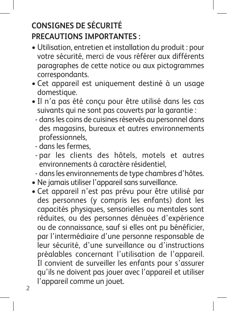 - Cet appareil est uniquement destiné à un usage domestique.
