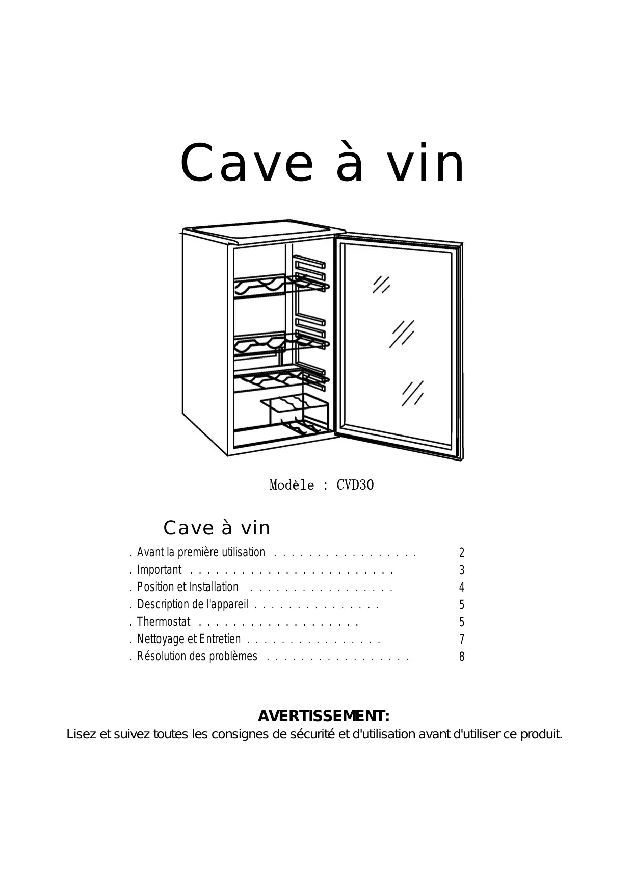 Retrouvez gratuitement la notice de l'appareil CVD 30 LA SOMMELIERE au format PDF.