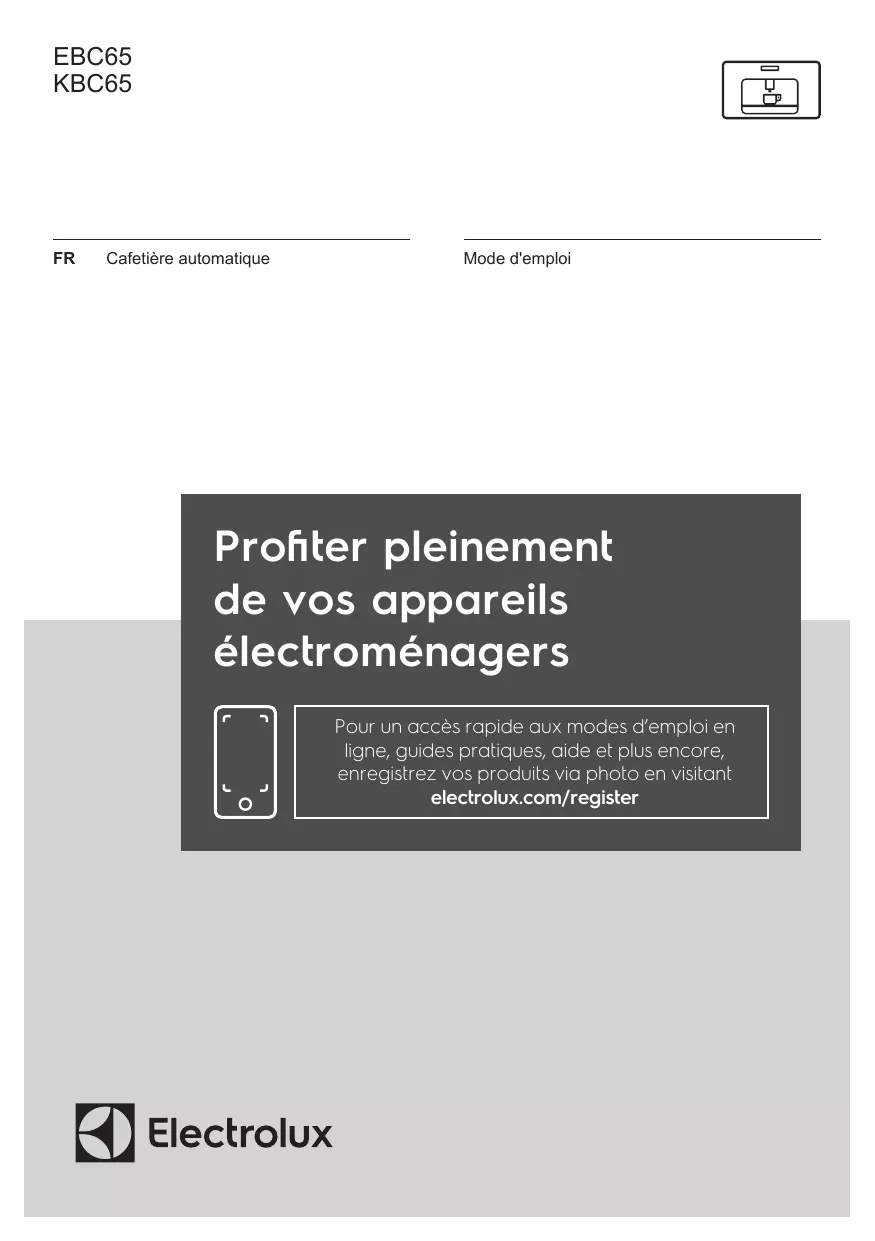 Profiter pleinement de vos appareils électroménagers Pour un accès rapide aux modes d’emploi en ligne, guides pratiques, aide et plus encore, enregistrez vos produits via photo en visitant electrolux.com/register
