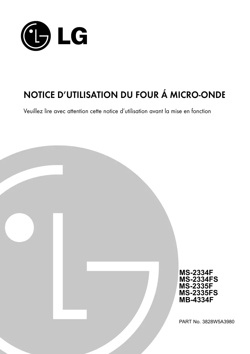 Téléchargez la notice de votre Micro-ondes au format PDF gratuitement ! Retrouvez votre notice MS 2335 F - LG-GOLDSTAR et reprennez votre appareil électronique en main. Sur cette page sont publiés tous les documents nécessaires à l'utilisation de votre appareil MS 2335 F de la marque LG-GOLDSTAR.