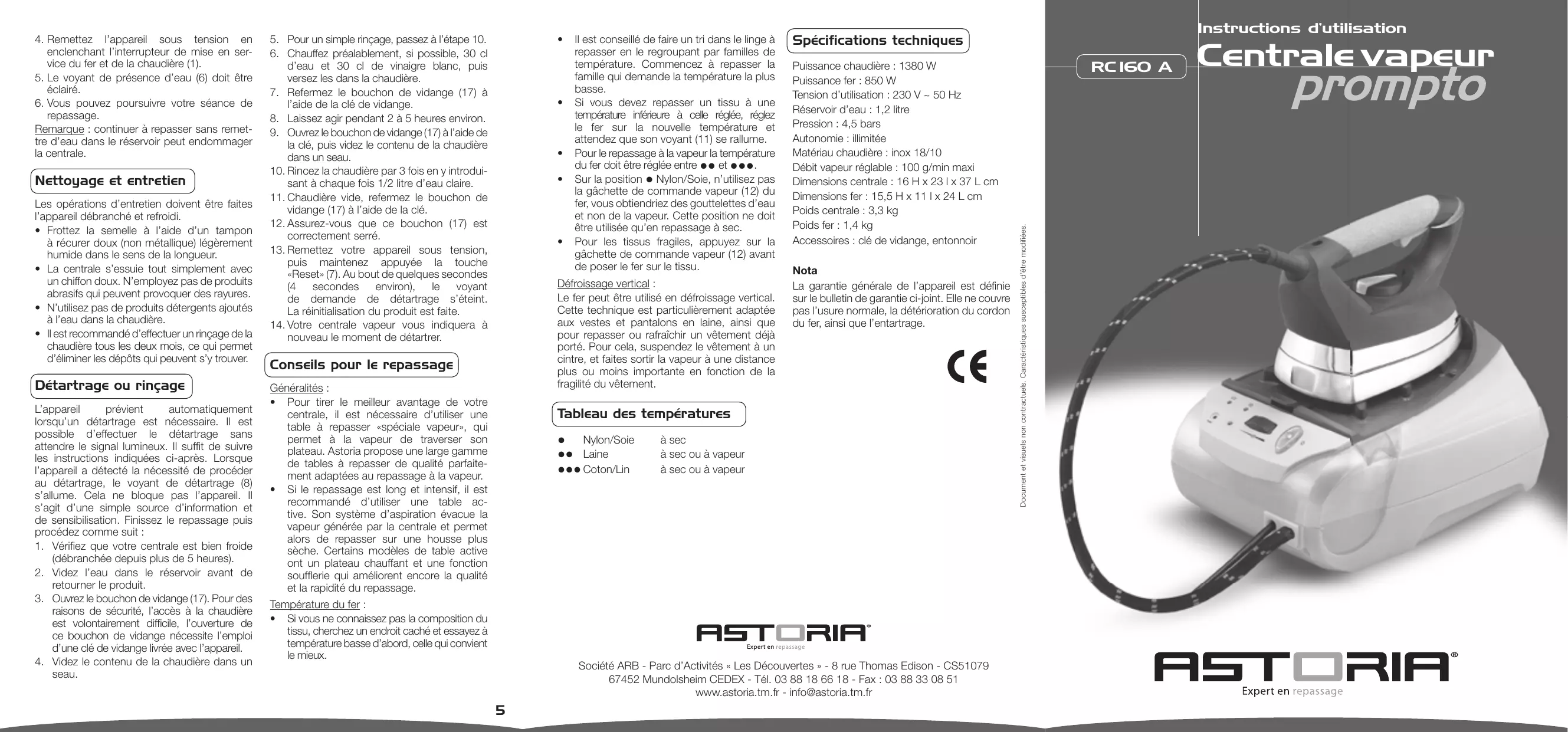 RC 160 A - Centrale vapeur ASTORIA - Notice d'utilisation et mode d'emploi gratuit