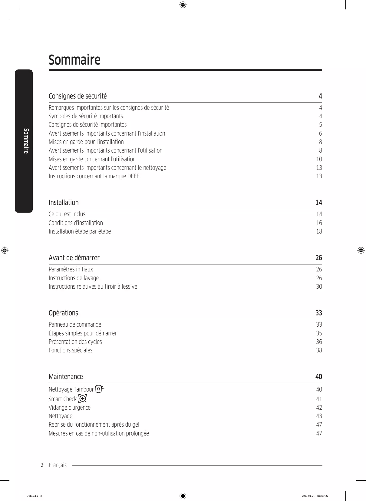 Lave-linge Manuel d'utilisation WW12R64**** Untitled-2 1 2019-01-21 2:27:21 Sommaire Consignes de sécurité